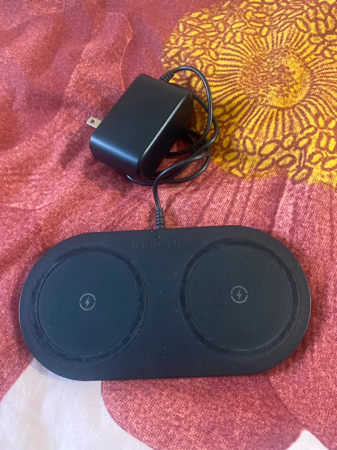 Insignia Wireless Charger with 2 pads to charge 2 devices at once.