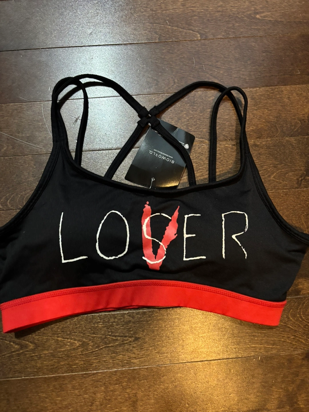 New with tags! This IT themed sports bra from Hot Topic is perfect for fans of the movie. It features the iconic 'Loser Lover' design. Great for workouts or everyday wear!