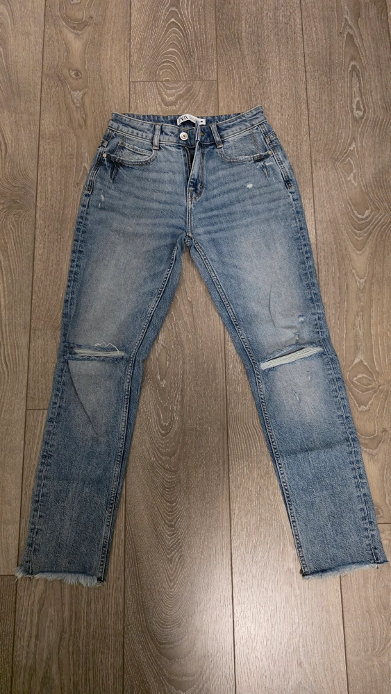 Selling a pair of Zara denim jeans! They are a size 0 and feature a stylish light wash with distressed detailing. Perfect for a casual, trendy look! Never worn.
