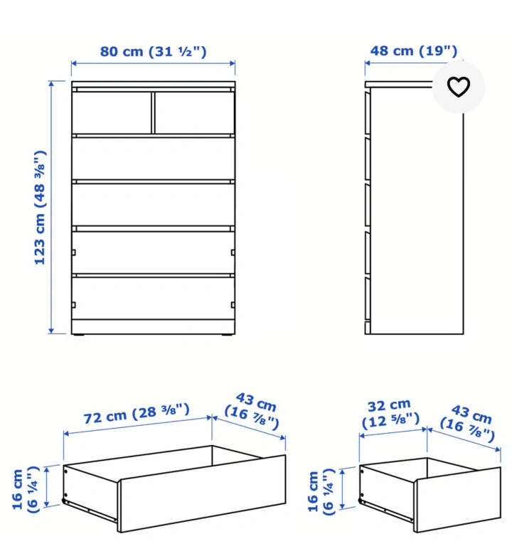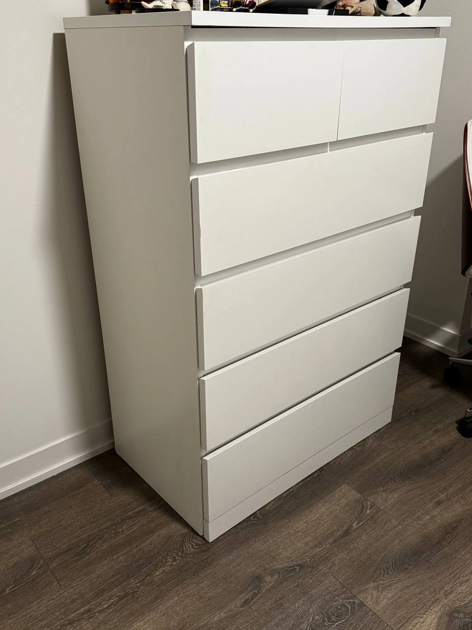 Selling a white IKEA Malm 6-drawer dresser. It's in great shape and ready for a new home! The dimensions are approximately 123 cm (height) x 80 cm (width) x 48 cm (depth). Perfect for adding storage to any room!
