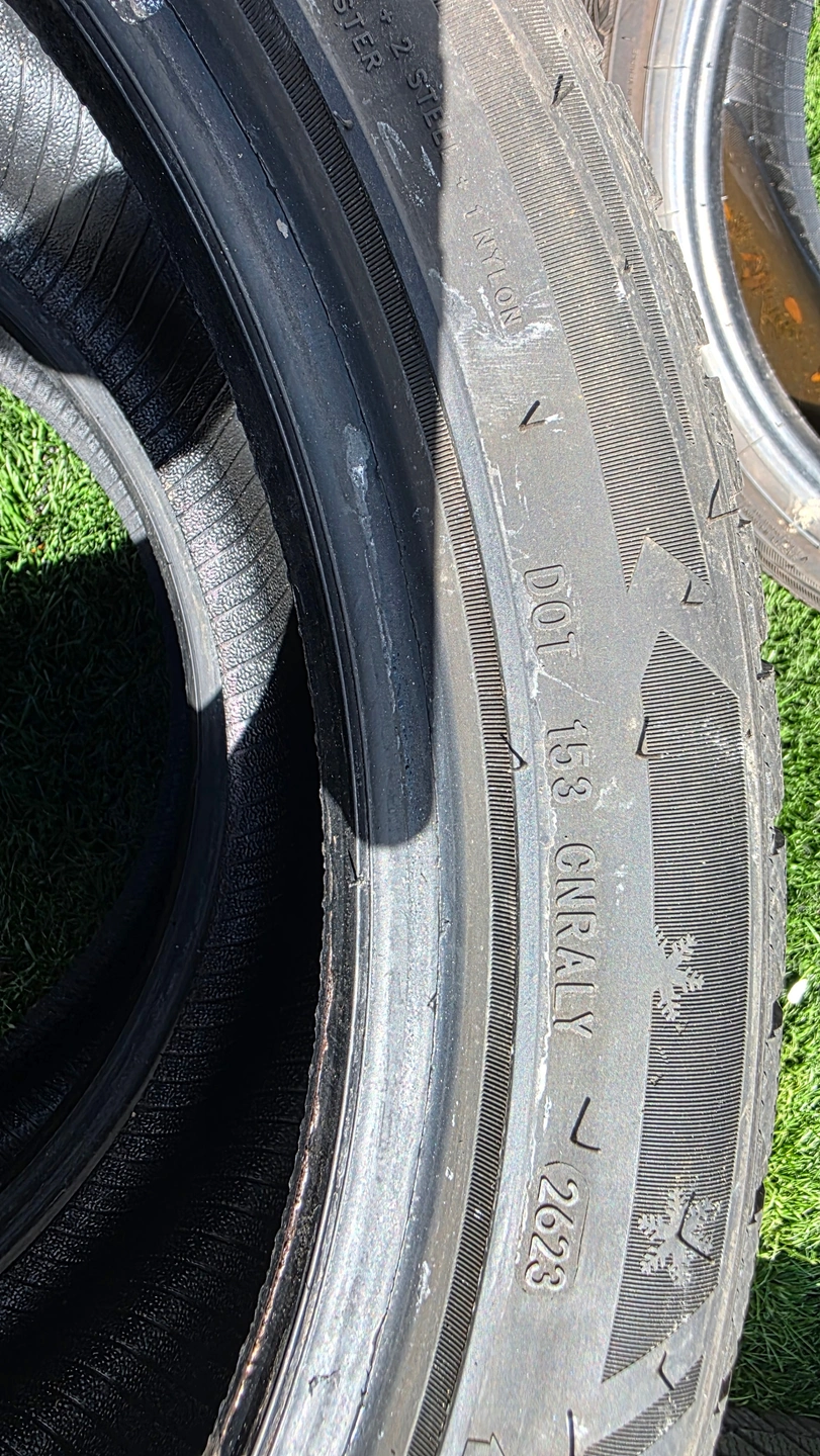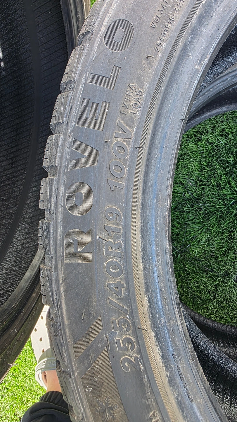 selling four 19 inch Rovelo winter tires for $400. two tires are 90% of tread remaining. the other two tires are 80%. tires have no patch or repair. The tire size is 255/40/19. similar to size 265/40/19, 245/40/19, 275/35/19 fit some of acura TL, TLX, Audi A6, A7, A8, Q3, s6, s7, s8, BMW 2 series, 4 series, i4, M5, M6, Cadillac CTS, DTS, STS,XLR, Ford mustang, Infiniti Q60, Jaguar XF, XJ, XK, Mercedes benz CL blass, S class, SL class, Nissan Z, Subaru legacy, VW tiguan, Volvo S90, V90, XC70 or other cars.for reference only, the buyer verifies the fitment please.