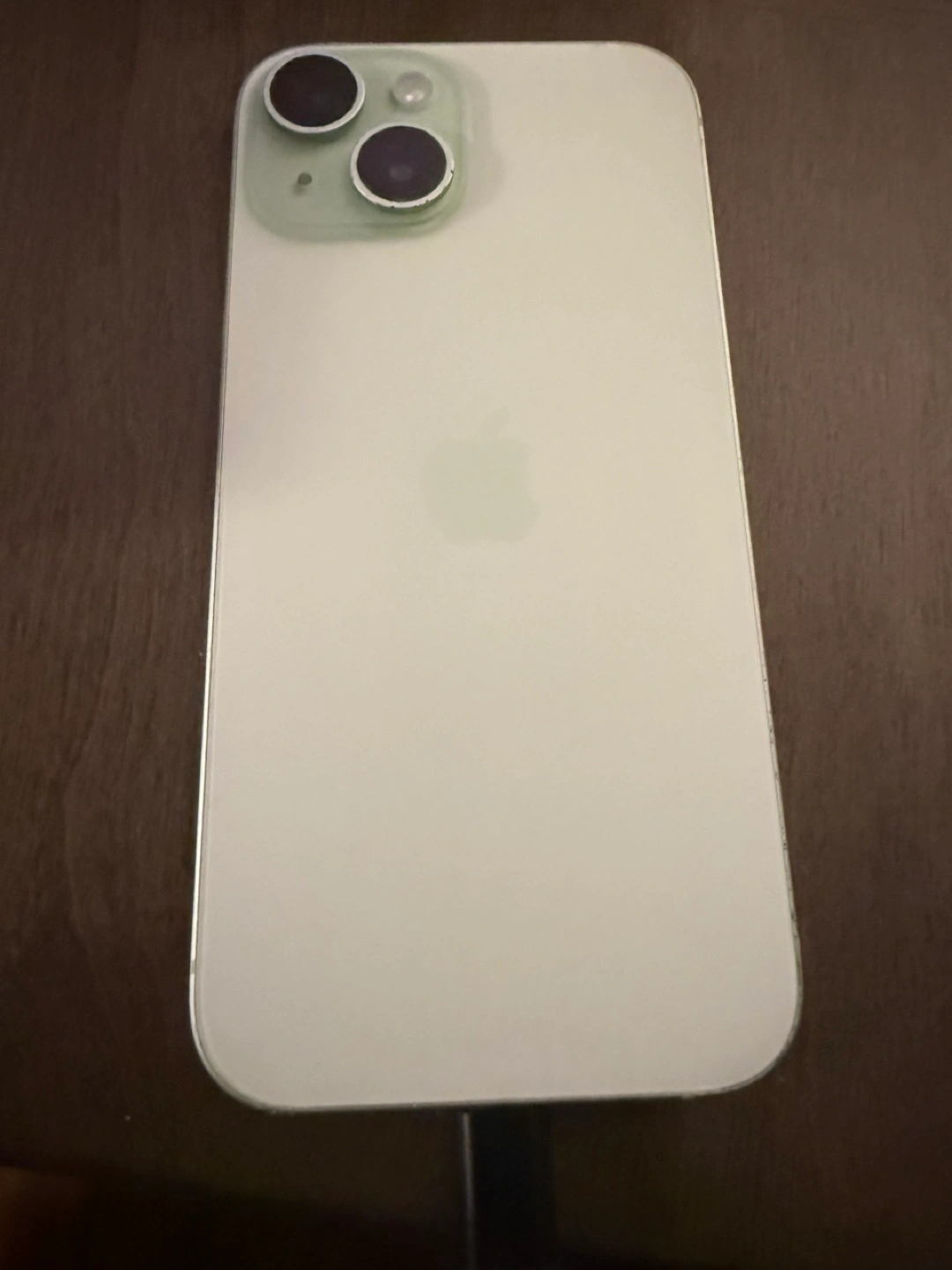 Selling an iPhone 15 in green with 128GB of storage. It comes with a box ( not original) and includes components like the charger and earphones. It's in good condition with a few small scratches on face. Ready for a new owner!