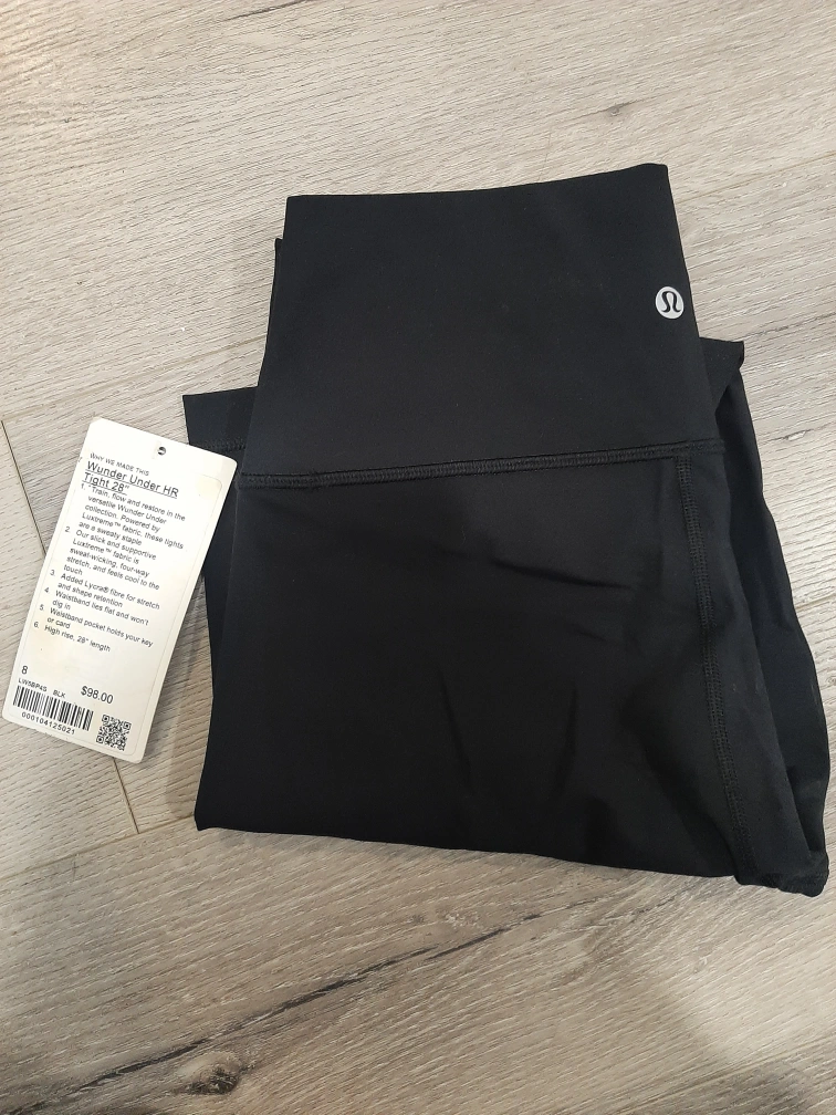 Selling a pair of Lululemon Wunder Under High-Rise leggings in black! They're a size 8 and new with tags. They're made with Luon fabric, which is supportive and comfortable for any activity! Originally bought for $98