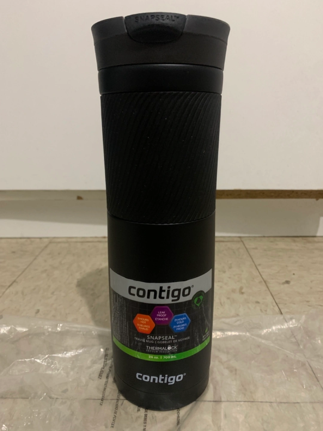 A great discount is waiting for an early bird ! Selling a Contigo SnapSeal travel mug in black. It holds 24 oz (709 mL). Great for keeping your drinks hot or cold on the go! Leak-proof design. Keep your beverages at the perfect temperature with this brand new Contigo 709 mL travel mug! The Contigo travel mug features THERMALOCK™ vacuum insulation that keeps drinks hot for up to 7 hours or cold for up to 18 hours. Features: - Capacity: 709 mL (24 oz) - THERMALOCK™ vacuum insulation - Keeps drinks hot for up to 7 hours or cold for up to 18 hours - Leak-proof lid when closed - One-handed drinking - Fits most car cup holders - Top-rack dishwasher safe lid; hand wash body - 100% BPA free Moving out sale - check out my other listings too If the ad is up, it’s available Pick up: North Etobicoke Pick up date & time: Text me 647-829-2027 Payment: Cash or E transfer Price is negotiable !