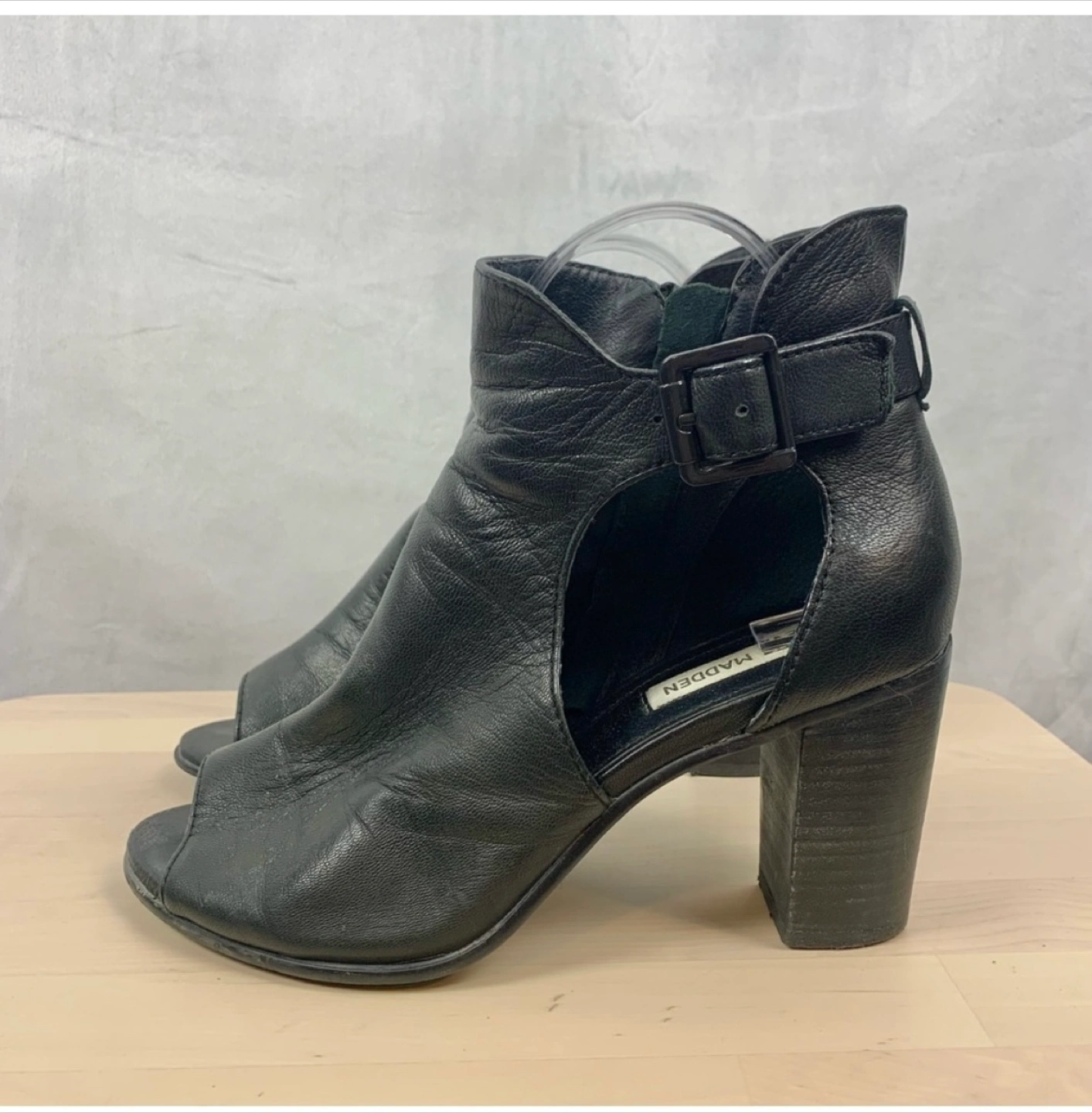 Steve Madden Nextstar Black Leather Peep Toe Booties - Size 7.5