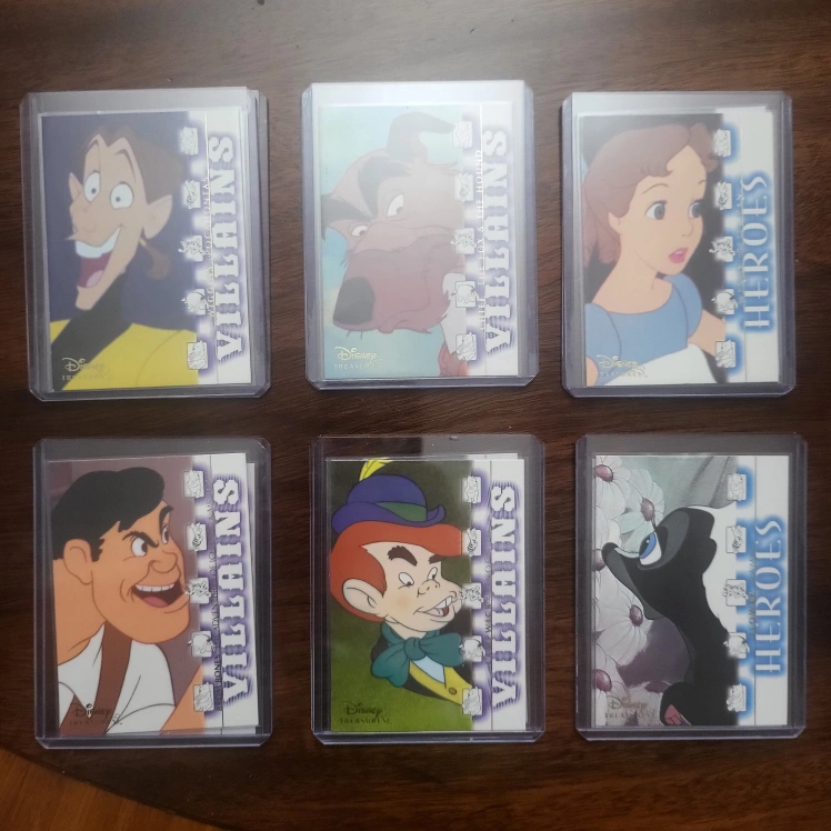 Selling Disney trading cards featuring both villains and heroes! These cards are from the Disney Treasures collection. Great for any Disney collector!