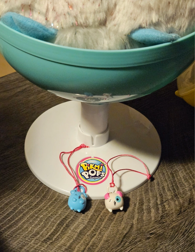 Pikmi Pops marshmallow scented Espy the Dog plush, storage case + 2 charms. In like new condition (still has scent).