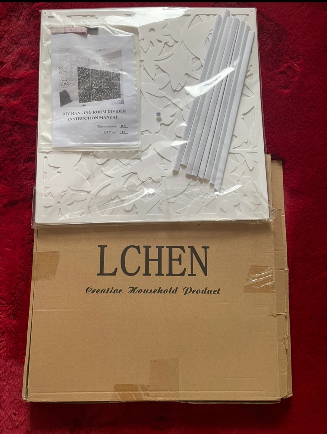 Selling a brand new LCHEN DIY Hanging Room Divider! Comes with the instruction manual and all 12 pieces. It's still in its original packaging and ready to add a stylish touch to your space