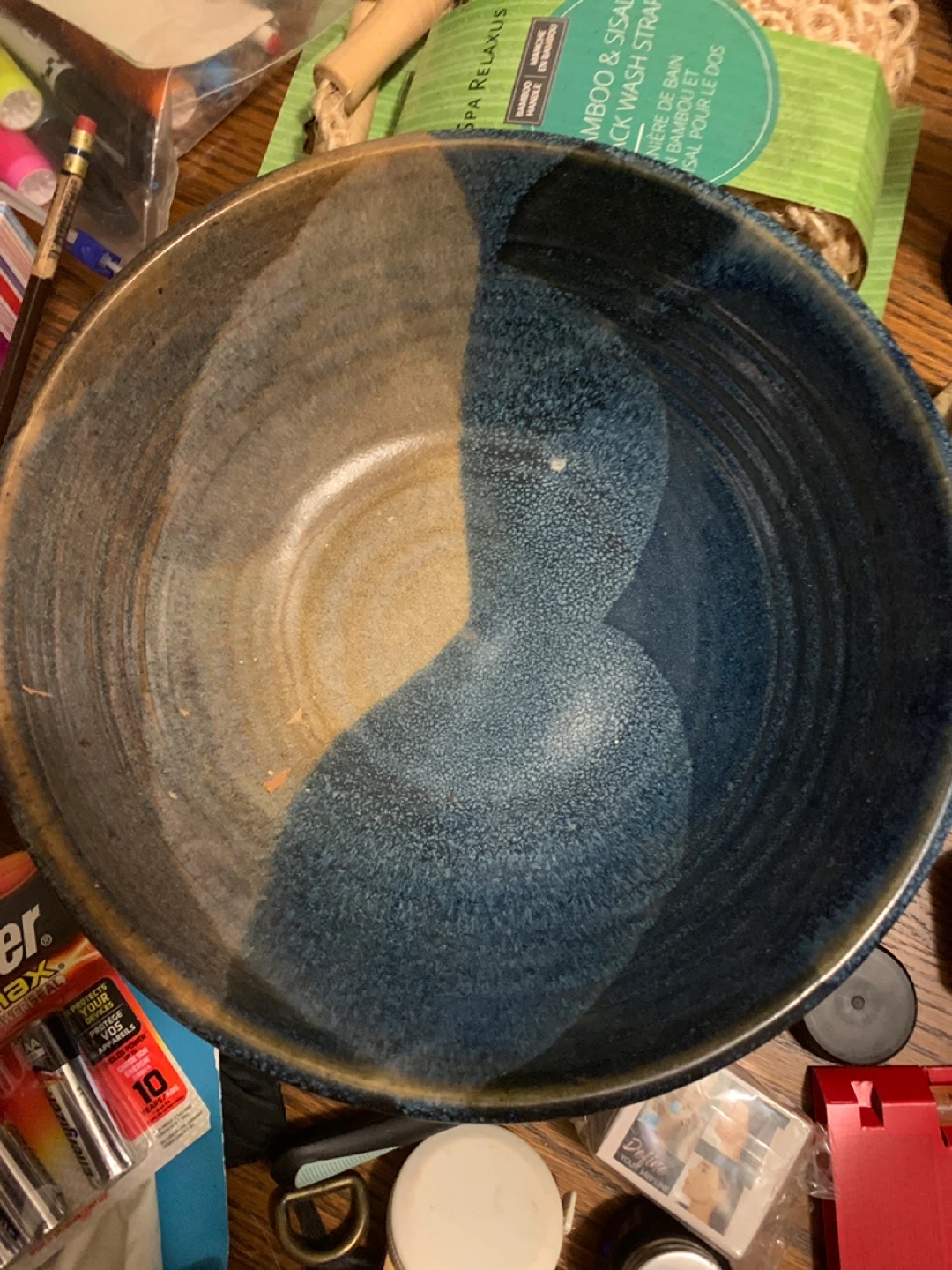 Selling a unique, handmade ceramic bowl. It features a beautiful blend of blue and beige colours. Perfect for adding a touch of artistry to your kitchen or dining space