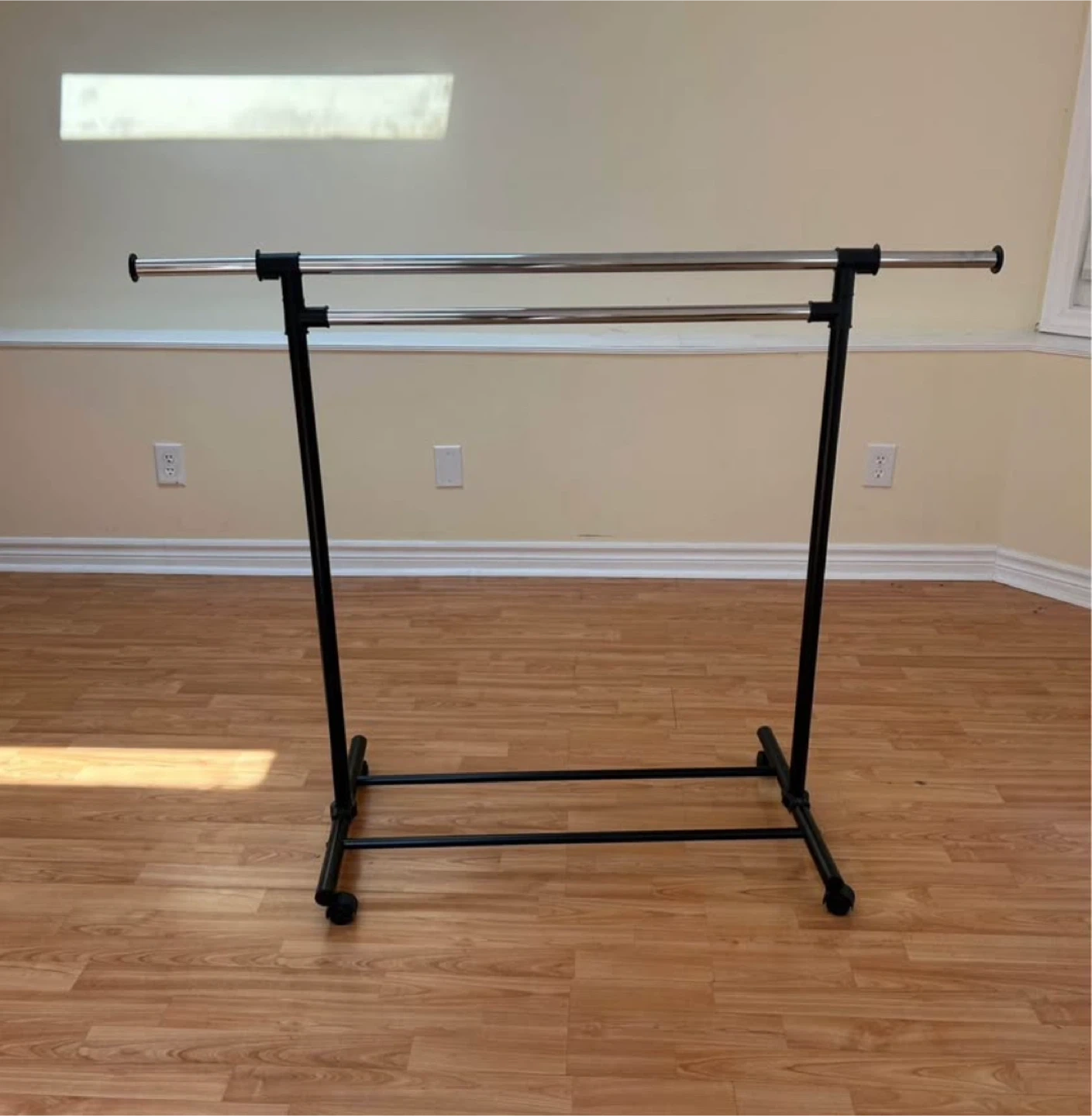 Selling a handy adjustable double rod clothing rack! It's in great shape and ready to help organize your wardrobe. Perfect for adding extra hanging space in your closet or laundry room