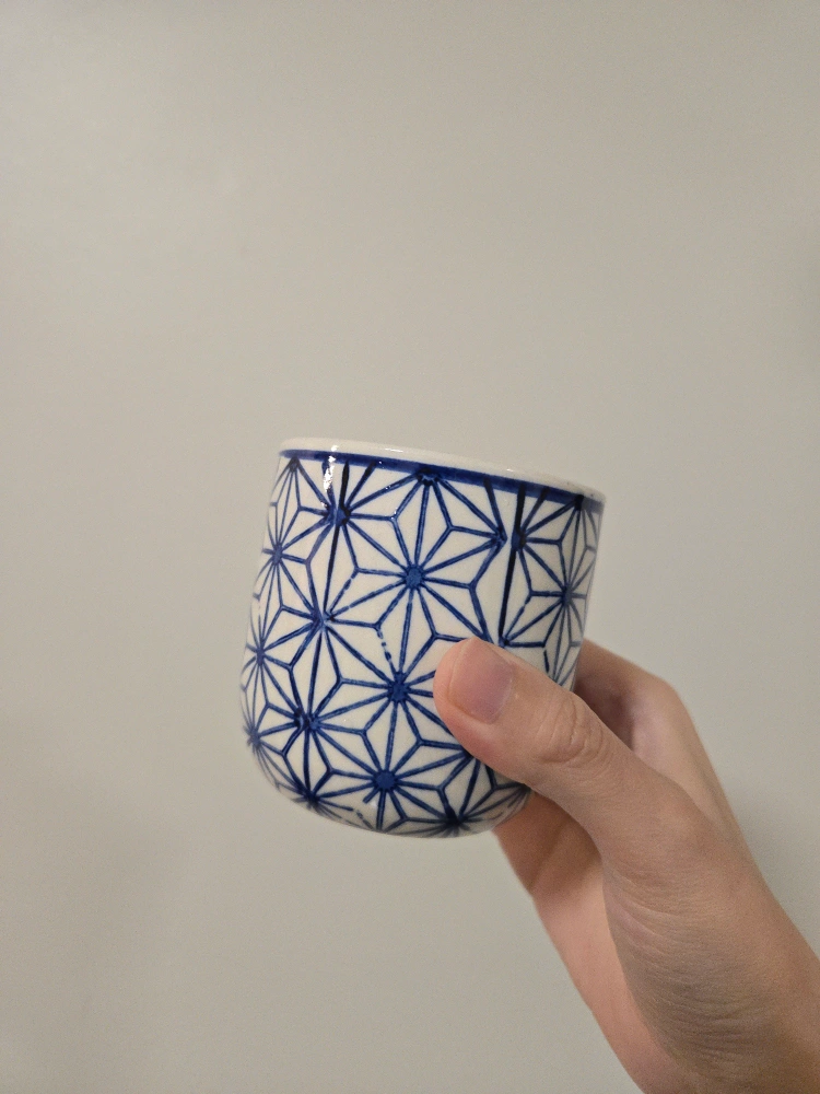 Selling a lovely Japanese style small pot. It features a beautiful blue and white geometric pattern.