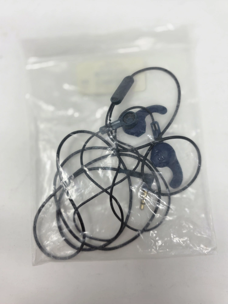 Here are some Philips wired earphones in dark blue. They're in good condition and ready for a new home! Perfect for listening to music or podcasts on the go