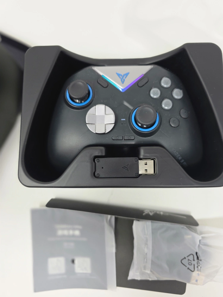 Selling a Flydigi Vader 3 Pro Game Controller! It comes with its original box and all included components like the USB receiver and instructions. This controller features innovative force feedback and is compatible with Android and Windows platforms. A great choice for PC and mobile gaming!