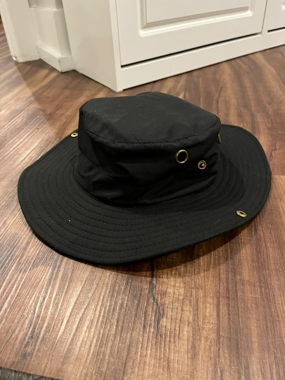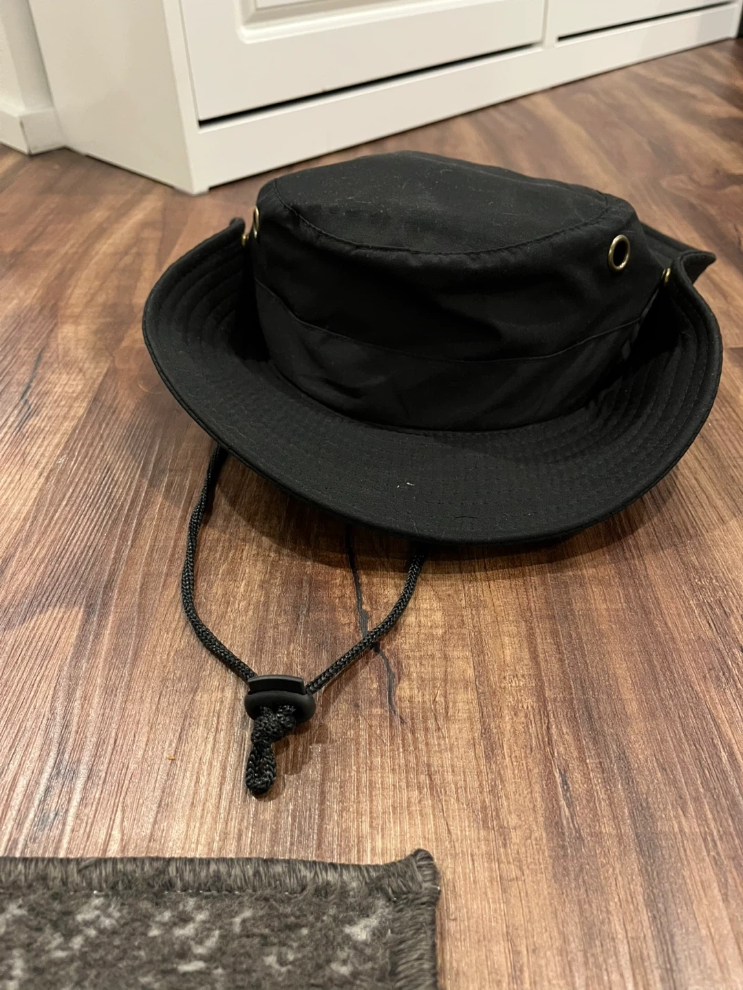 Selling a black bucket hat. It's in brand new condition and ready for a new home! Perfect for keeping the sun out of your eyes while you're out and about Adult size from the dollar store - never worn