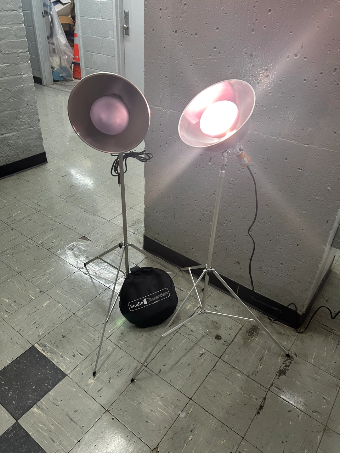 Selling a Studio Essentials lighting kit. Includes two lights with stands and a carrying bag. Great for photography or video projects!