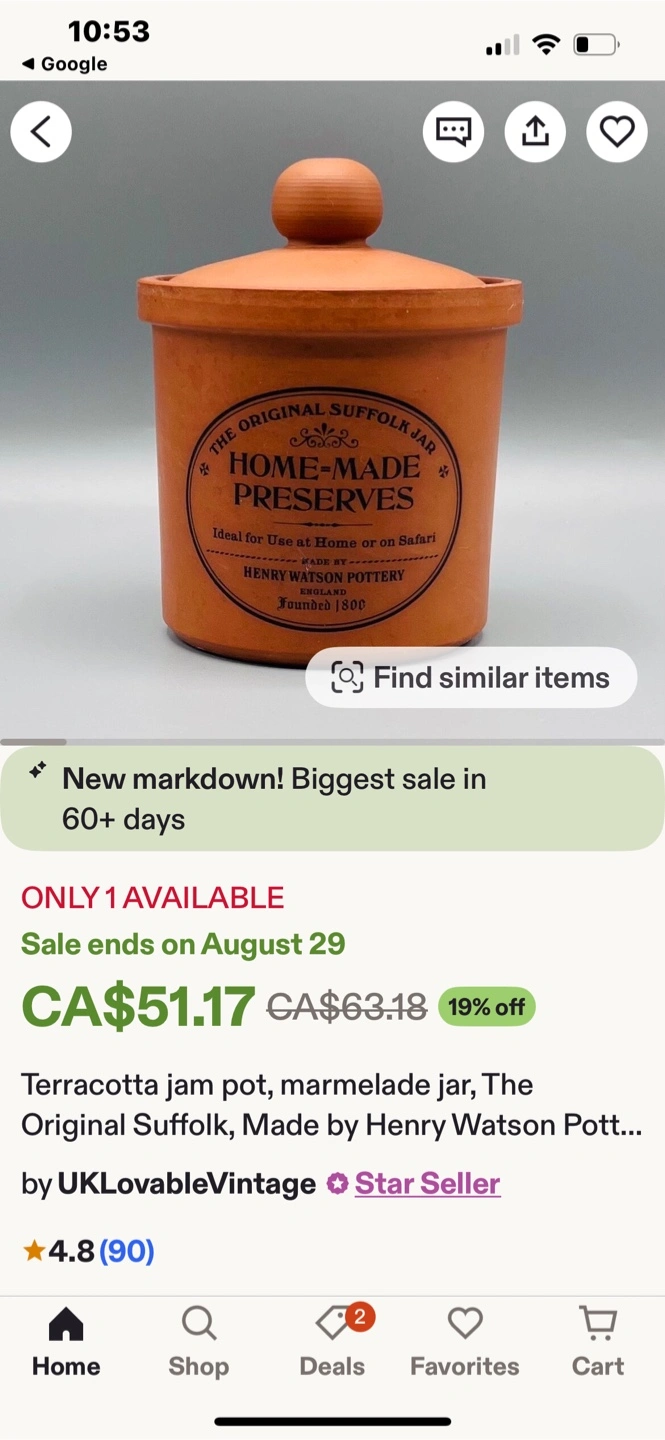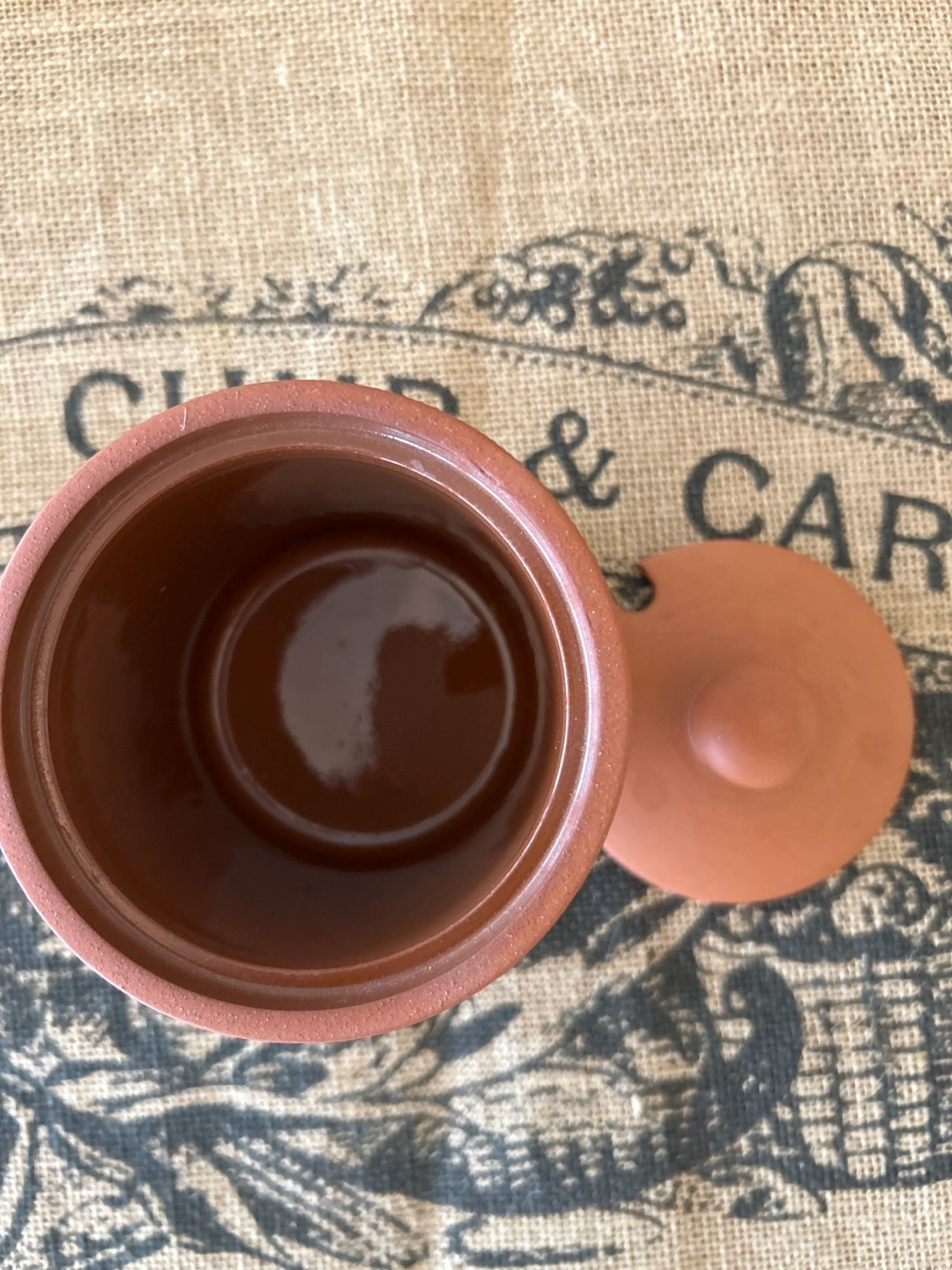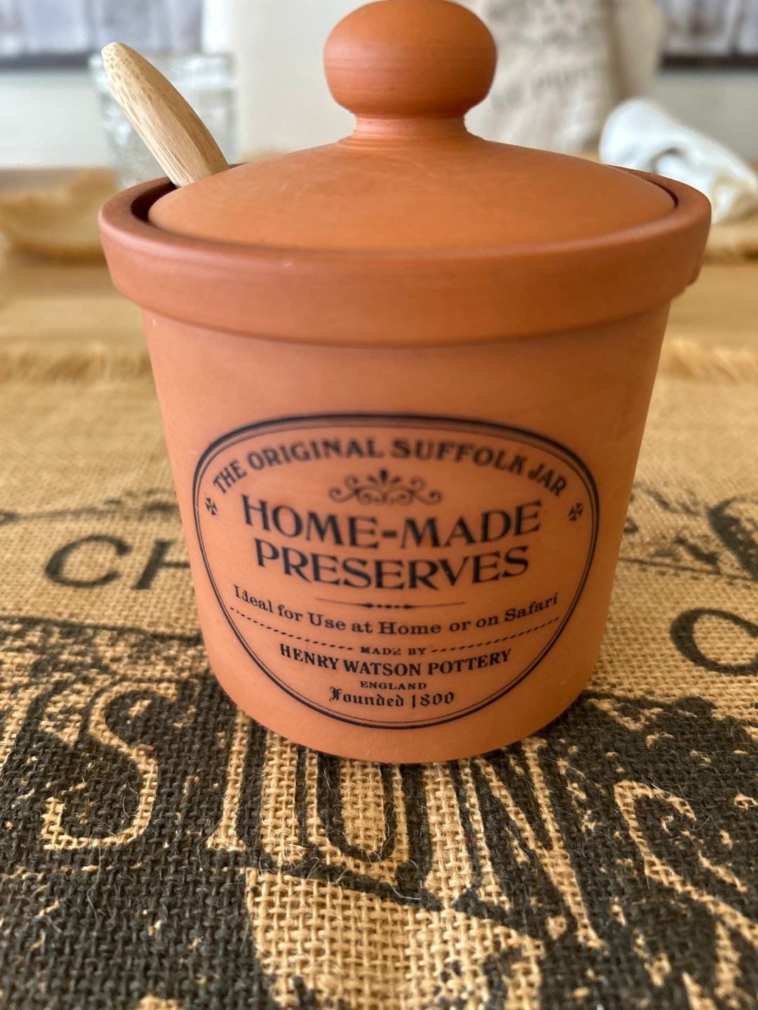 Selling a charming Original Suffolk terracotta jam jar, perfect for adding a touch of rustic elegance to your kitchen or dining area! It's ideal for storing homemade preserves or marmalade. The jar is made by Henry Watson Pottery, founded in 1800. Has one small chip on the side, not very noticeable.