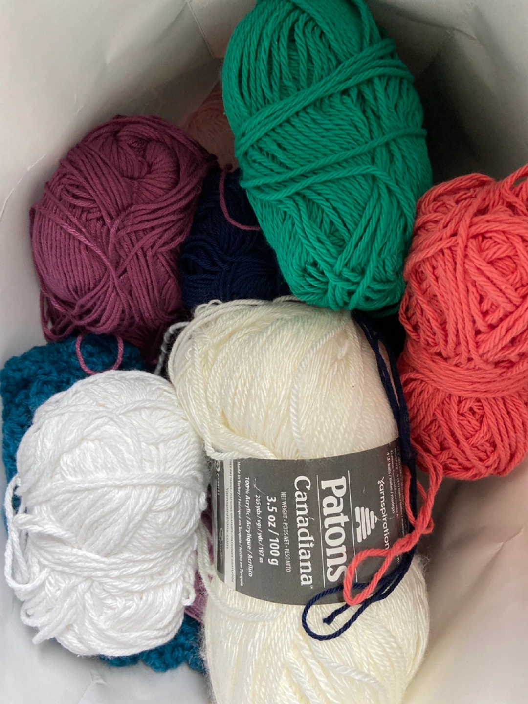 Assorted yarn balls for sale, selling for $2-3 each (depending on type and amount of material left). There’s more than those pictured.