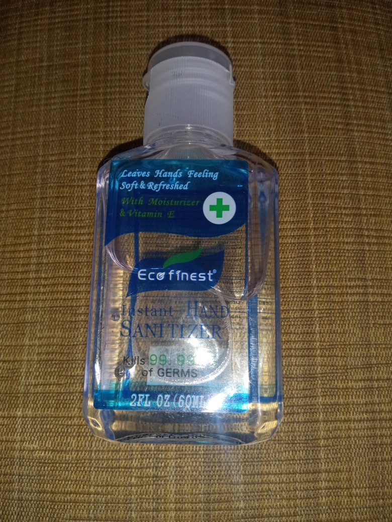 Ecoffnest Instant Hand Sanitizer in a 2 fl oz (60mL) bottle. It leaves hands feeling soft and refreshed with moisturizer and Vitamin E. Kills 99.99% of germs