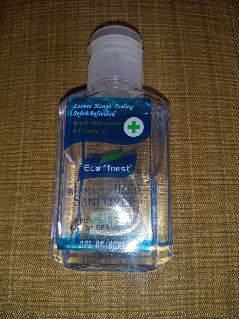 Ecoffnest Instant Hand Sanitizer in a 2 fl oz (60mL) bottle. It leaves hands feeling soft and refreshed with moisturizer and Vitamin E. Kills 99.99% of germs