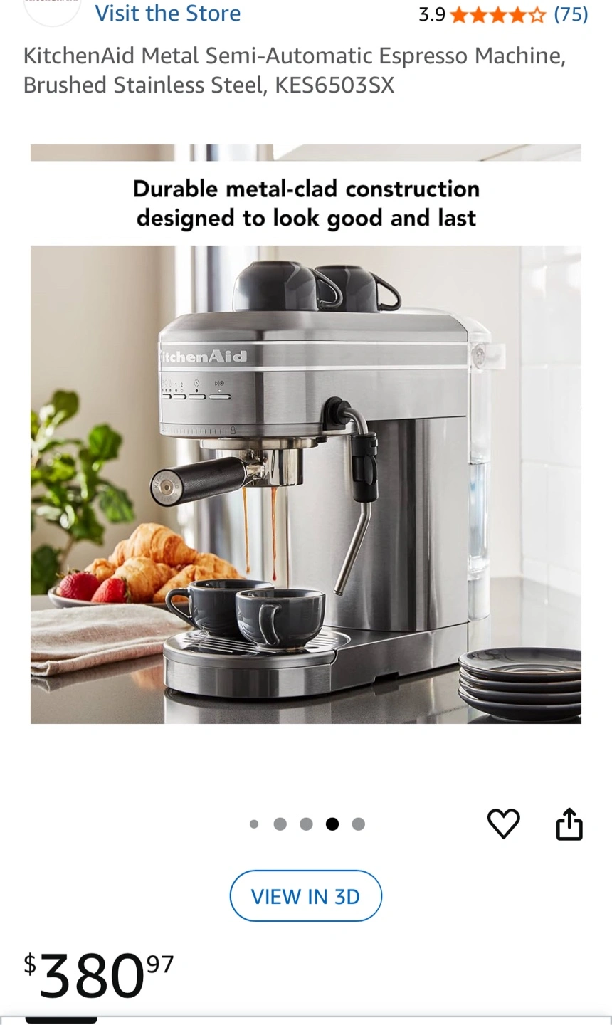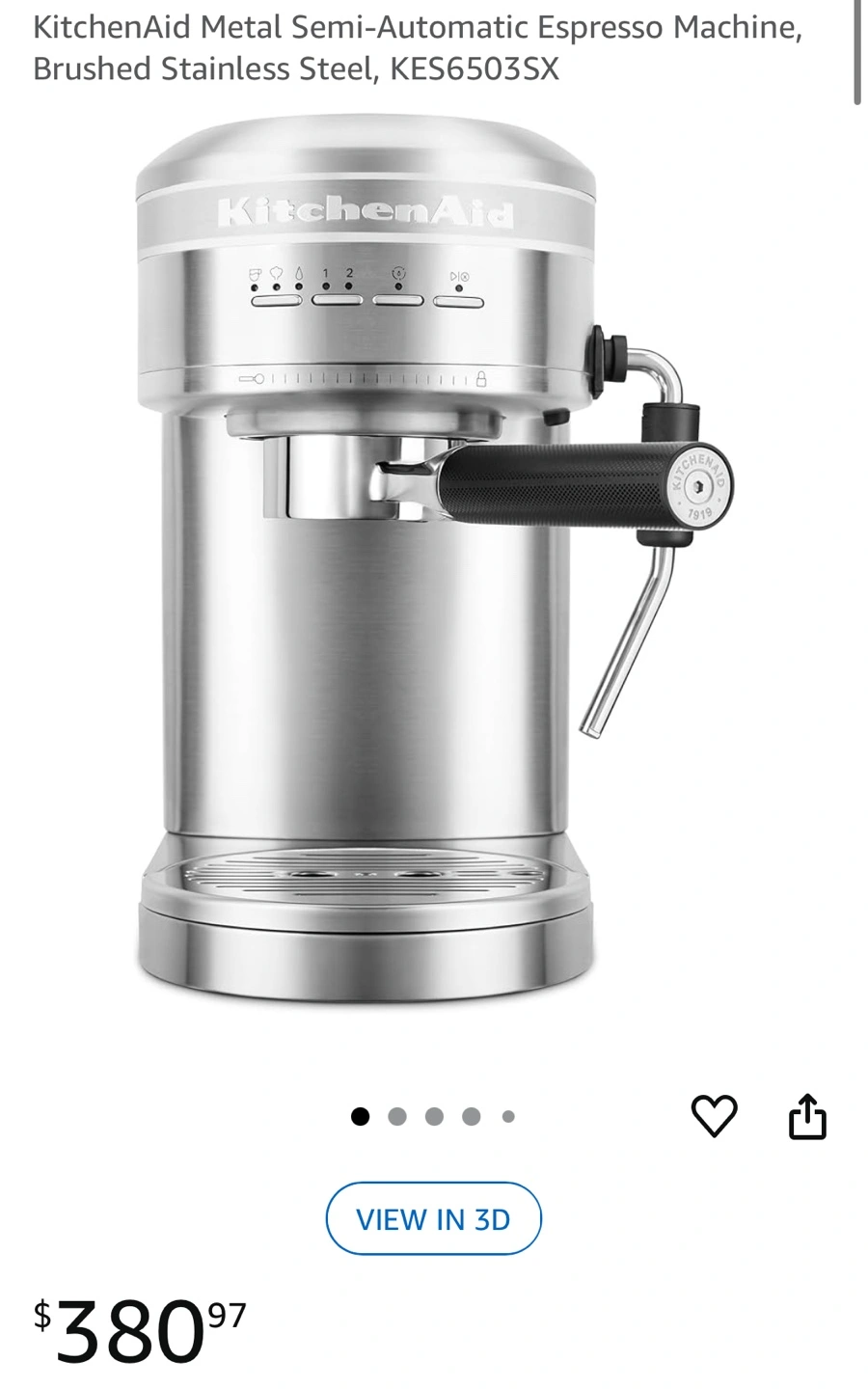 Selling a KitchenAid Metal Semi-Automatic Espresso Machine, model KES6503SX! It's in brushed stainless steel and ready to make lattes, cappuccinos, and macchiatos with its versatile steam wand. Durable metal-clad construction designed to look good and last. It has never been used, it is in its original sealed box π€© Black