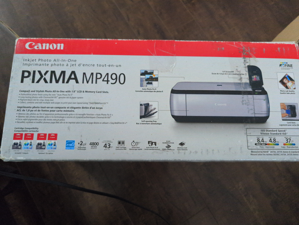 Selling a Canon MP490 all-in-one printer. It's in good working condition and ready to use for your printing, scanning, and copying needs. A great addition to any home office!