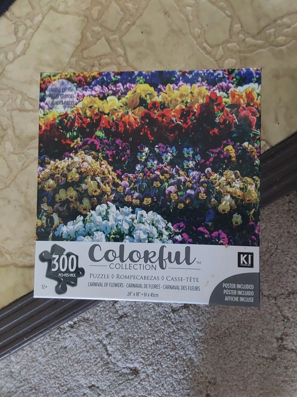 Selling a 300-piece puzzle from the Colorful Collection! The puzzle is titled "Carnival of Flowers" and includes a poster. The assembled puzzle measures 24" x 18" (61 x 45cm)