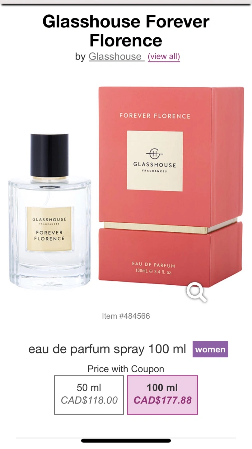 Selling a bottle of Glasshouse Forever Florence Eau de Parfum. It's a 100ml bottle of women's fragrance. Originally bought for $177.88 CAD.