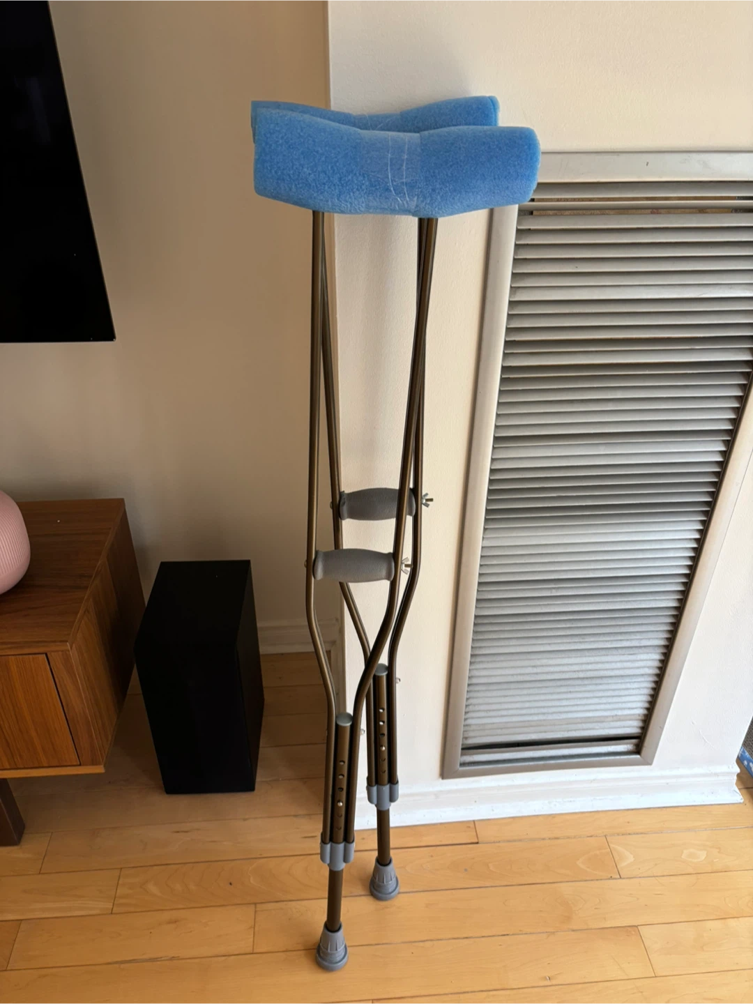 Selling a pair of adjustable adult crutches in good condition. They're perfect for anyone needing a little extra support while recovering. The crutches are sturdy and have comfortable padding under the arms.