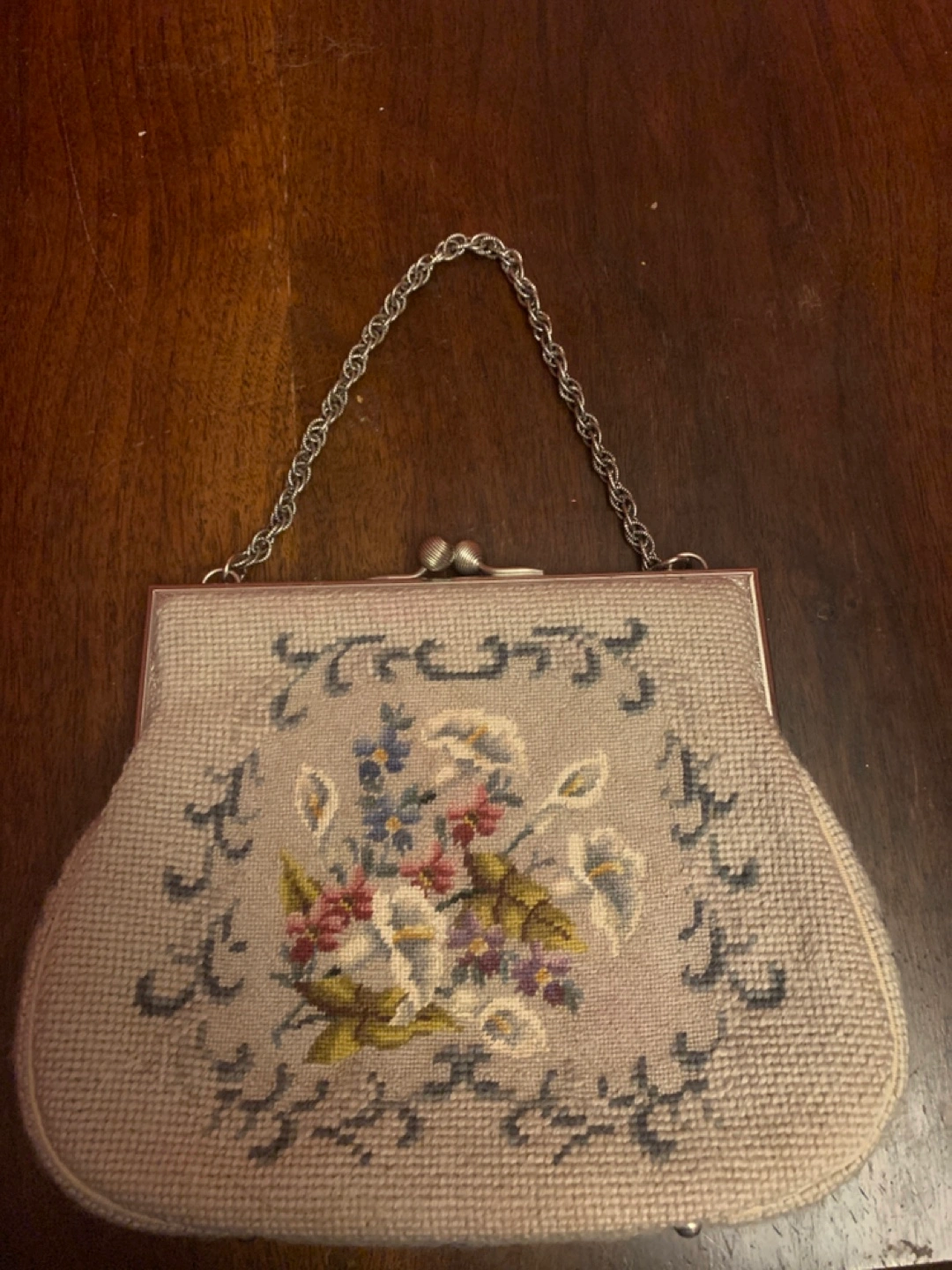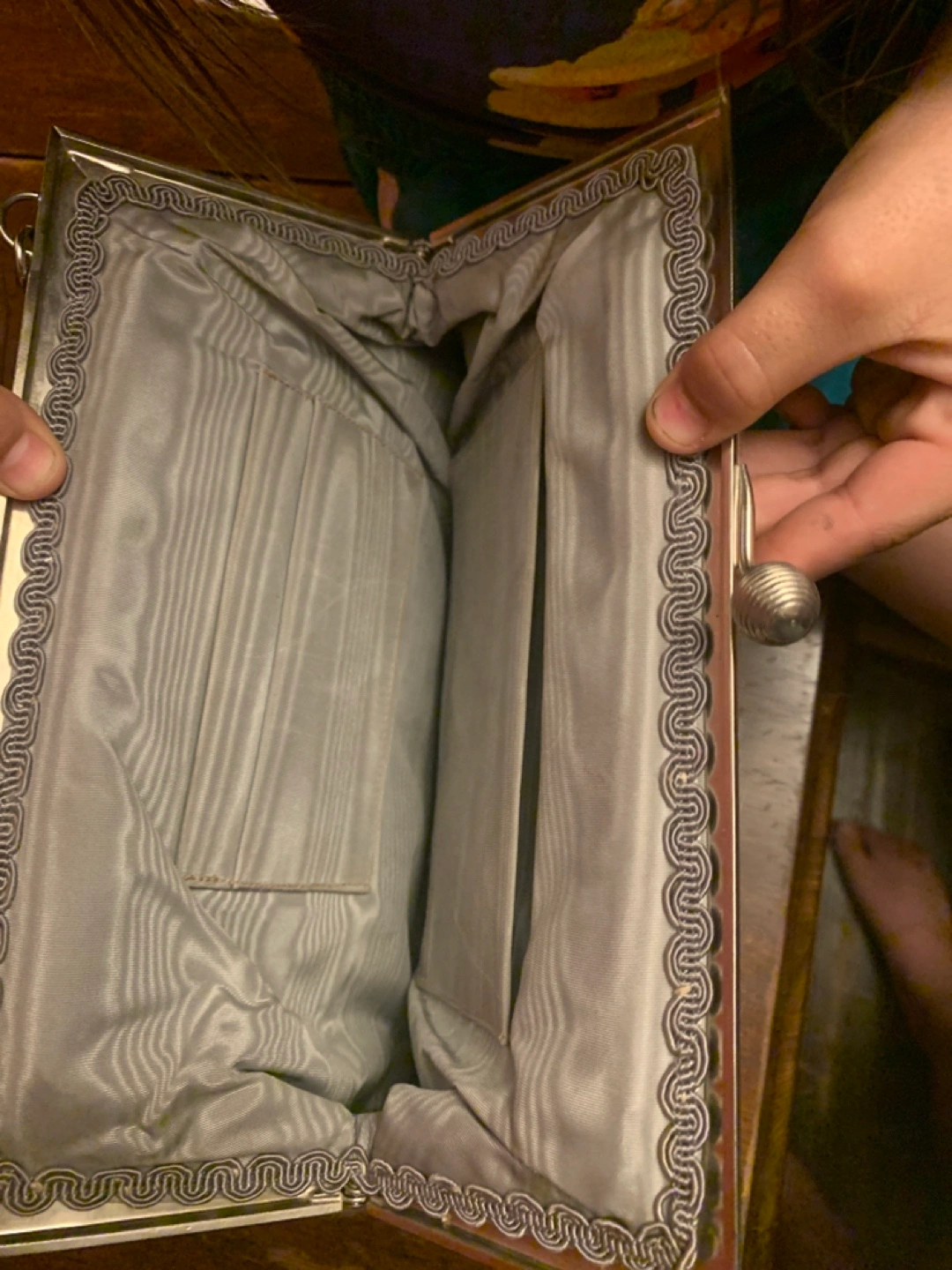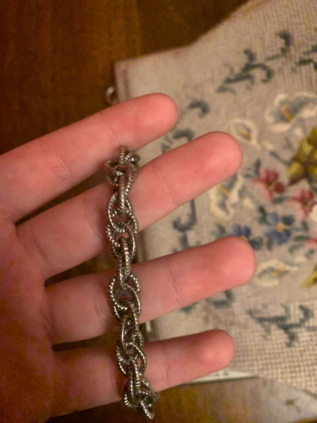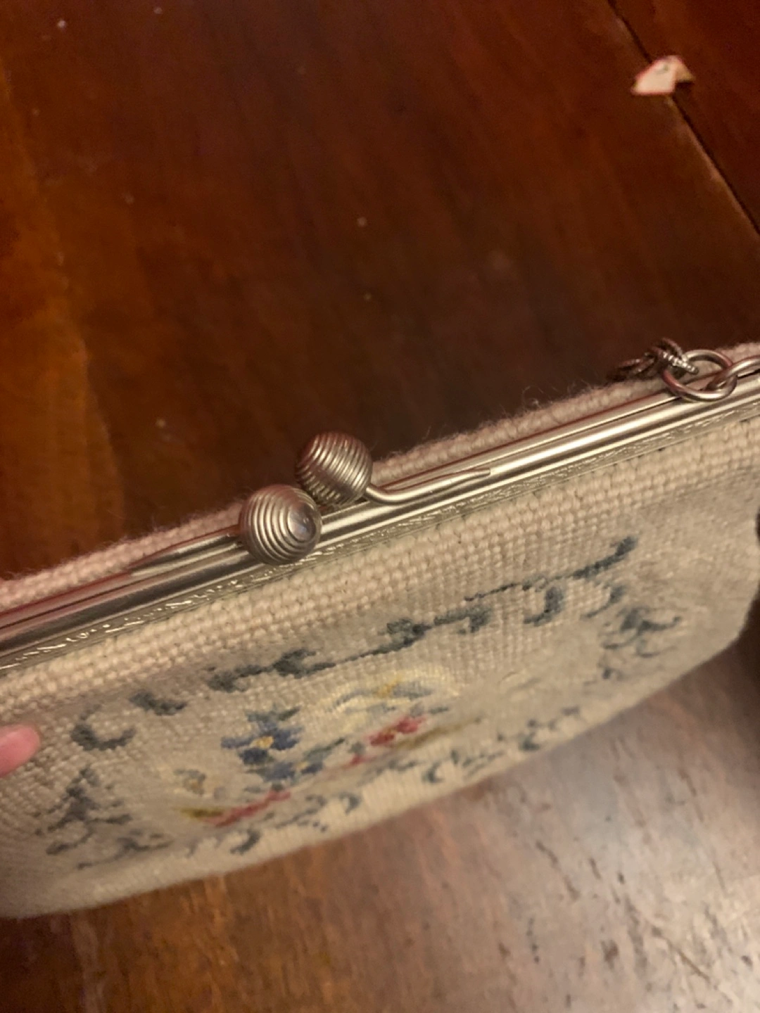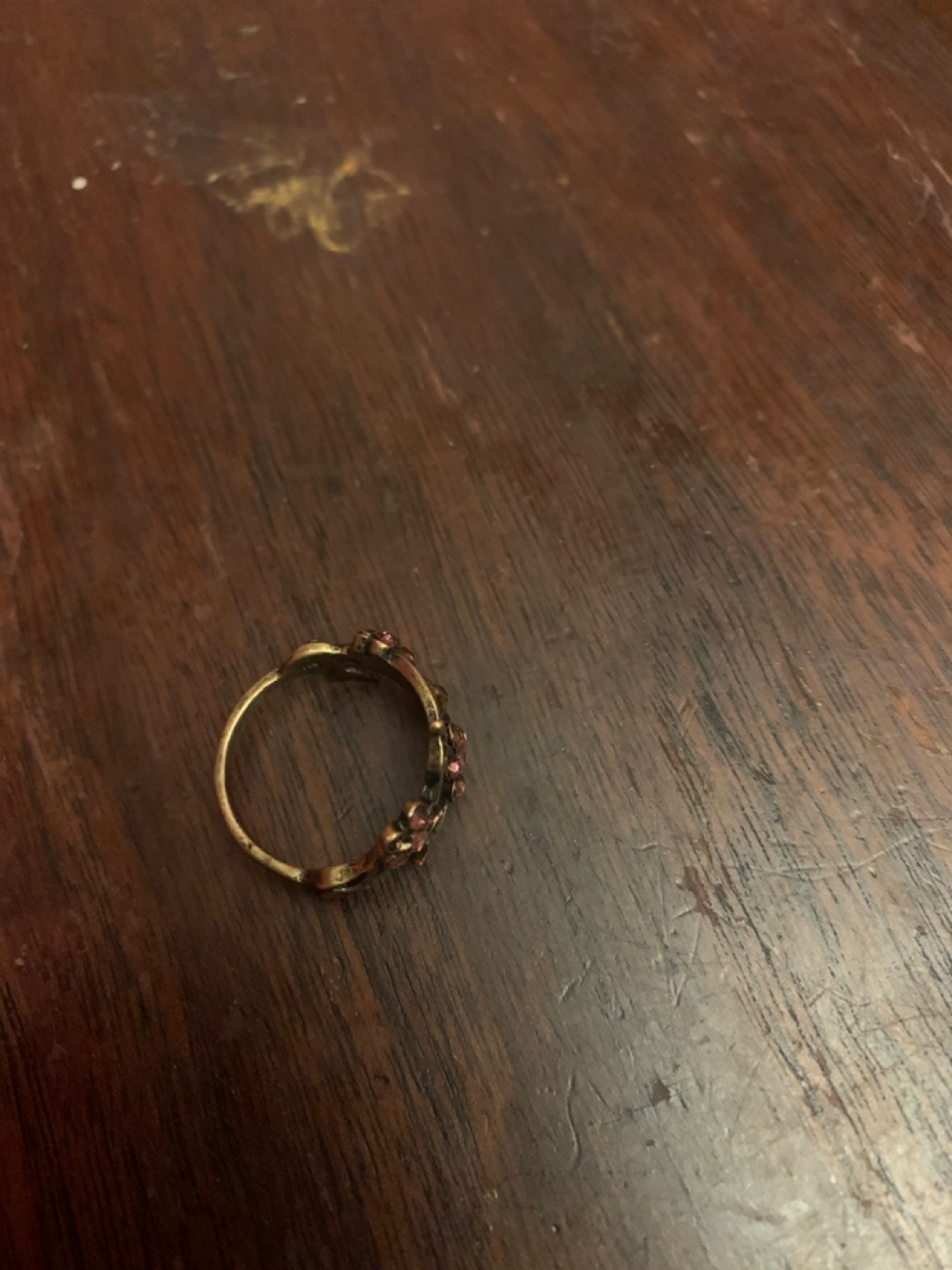 Selling a vintage ring from B. Pearl Originals! It comes in its original box, which is in great condition. The ring itself has a lovely floral design with small pink stones. It's a unique and charming piece!