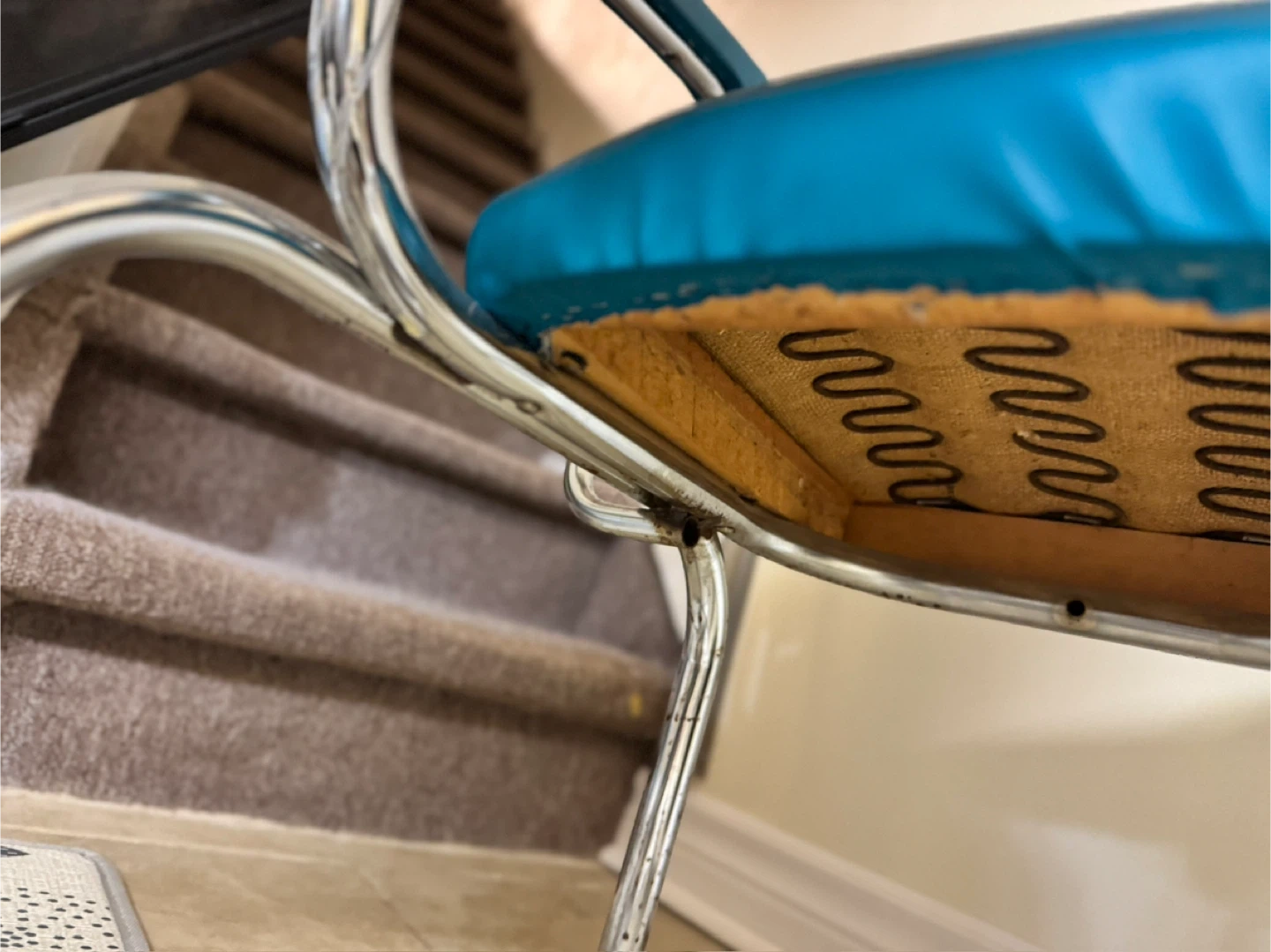 Vintage MCM Rocking Chair – Teal Vinyl & Chrome (Atomic Era)