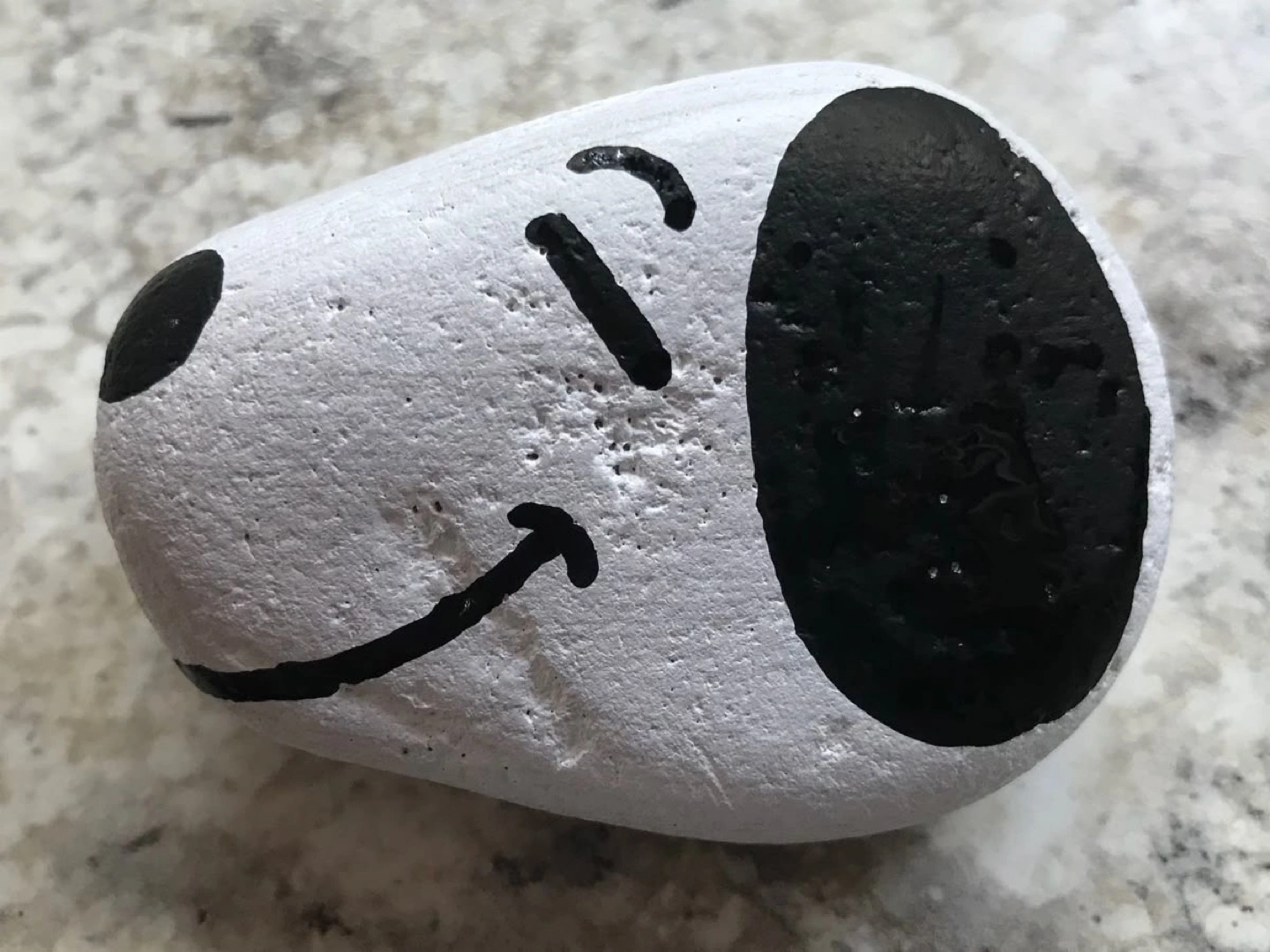 Here's a cute Snoopy painted rock! It's painted white with black details to resemble Snoopy's face. A fun little piece to add to your collection or use as a decorative item