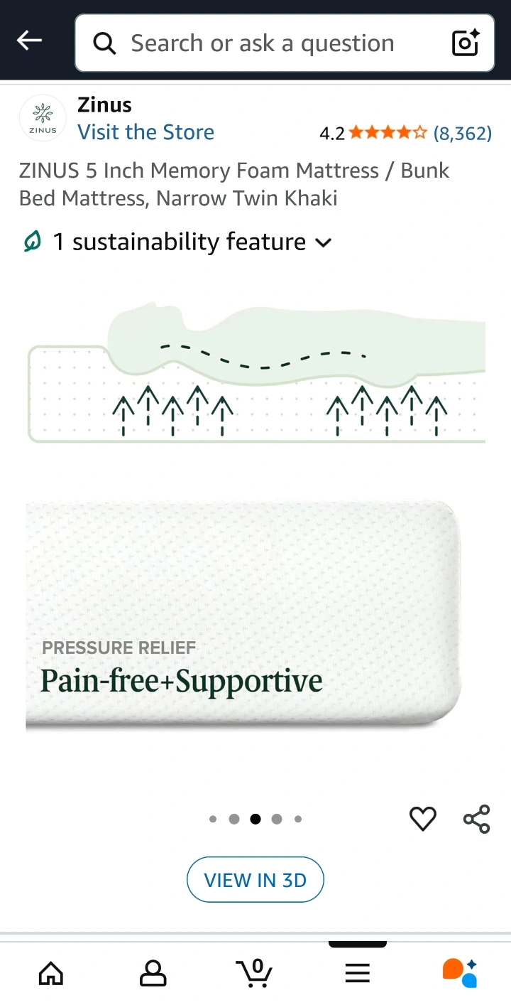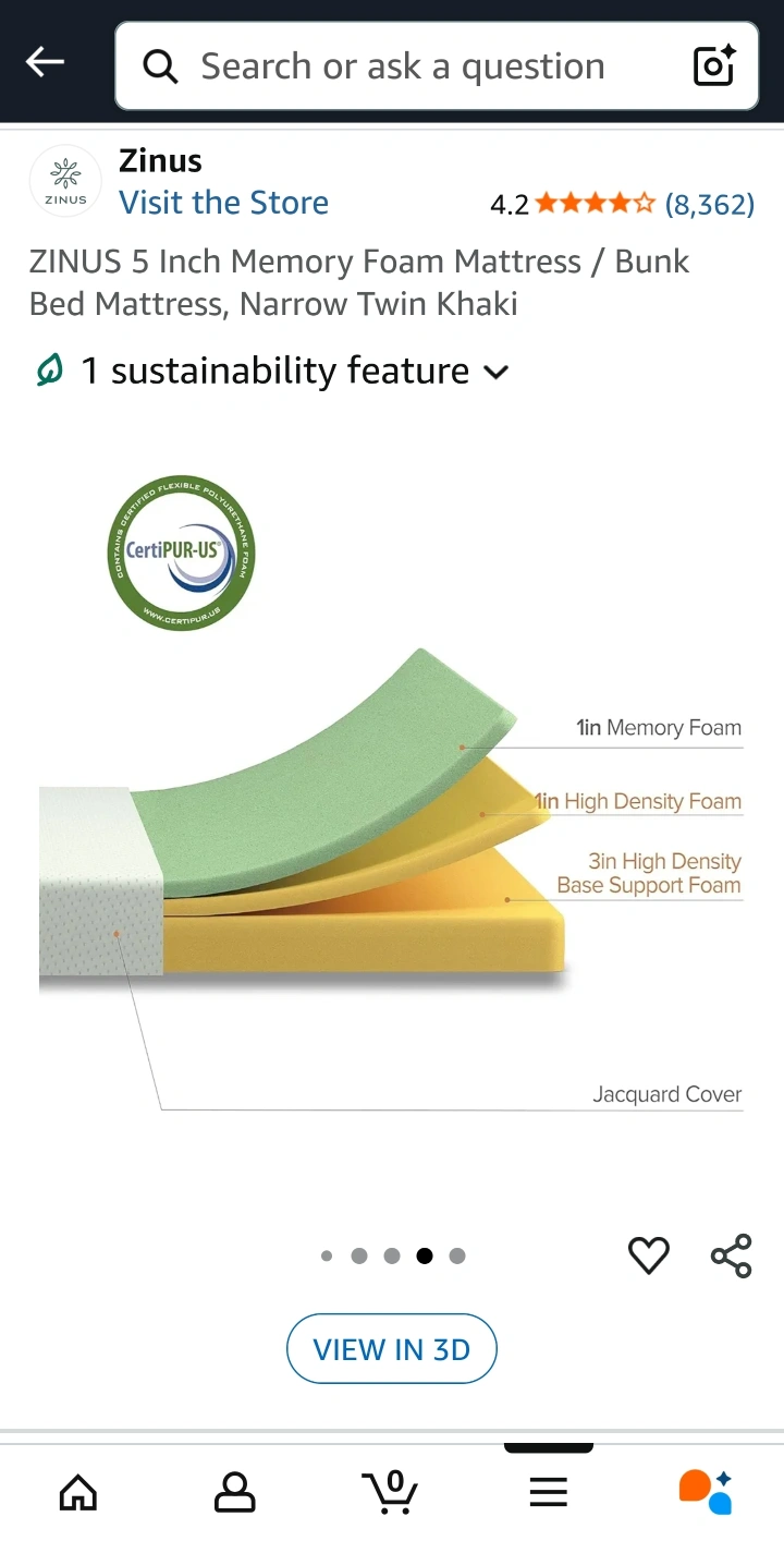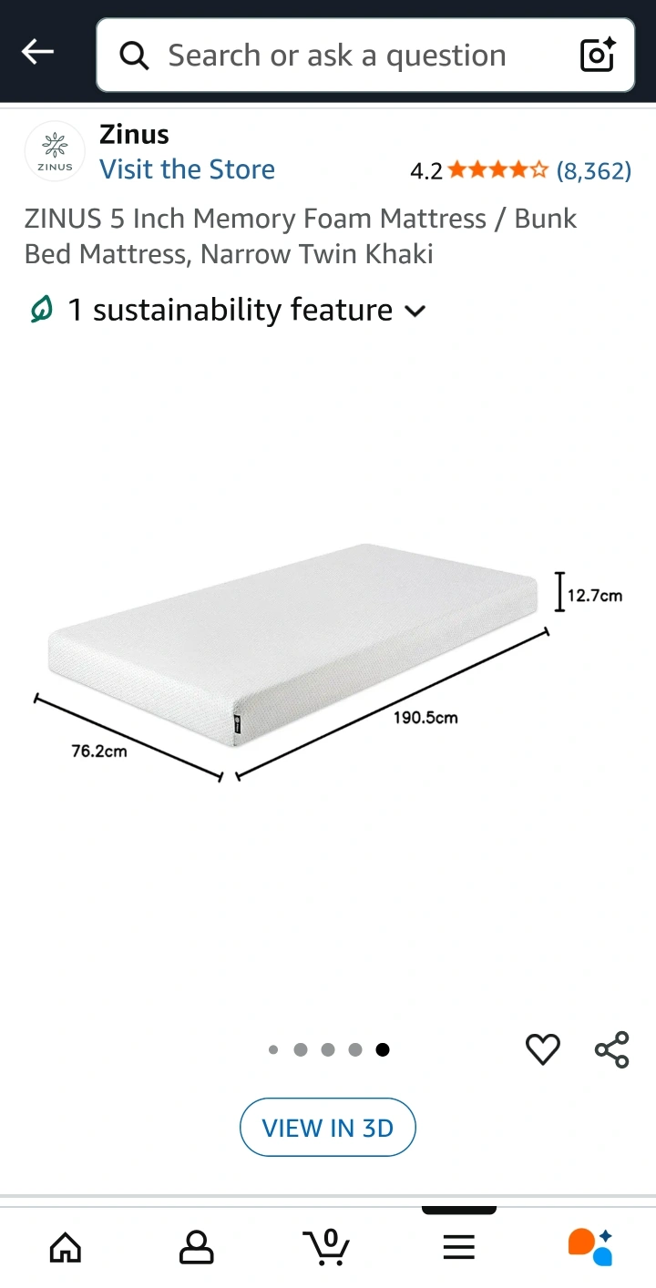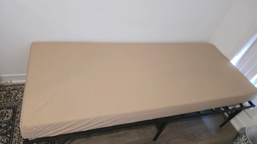 Selling a Zinus 5-inch memory foam mattress, perfect for a bunk bed or narrow twin setup! It's in great shape and offers pressure relief for a comfy sleep. The colour is a neutral khaki. Dimensions are approximately 76.2cm x 190.5cm x 12.7cm.