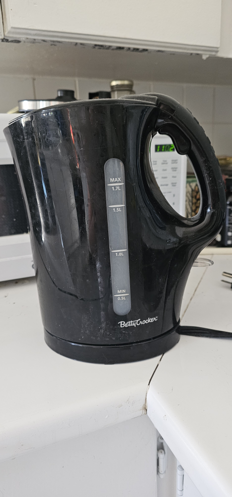 Selling a Betty Crocker electric kettle in black. It has a 1.7L capacity. Perfect for quickly boiling water for tea or coffee.