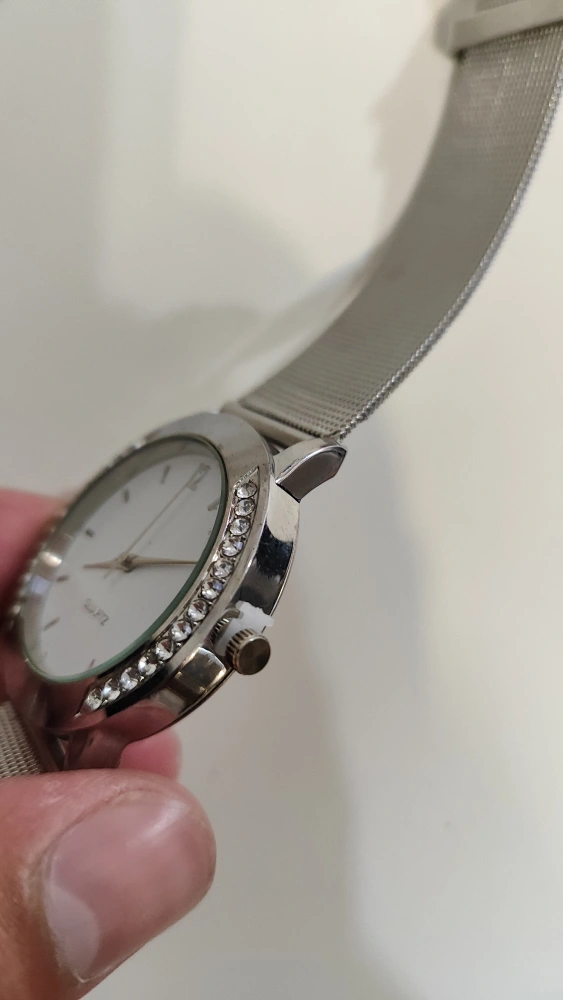 Selling a lovely silver-tone Zaurro quartz watch. It features a mesh band and a bezel adorned with crystals. It's in excellent condition and ready to add a touch of sparkle to your wrist!