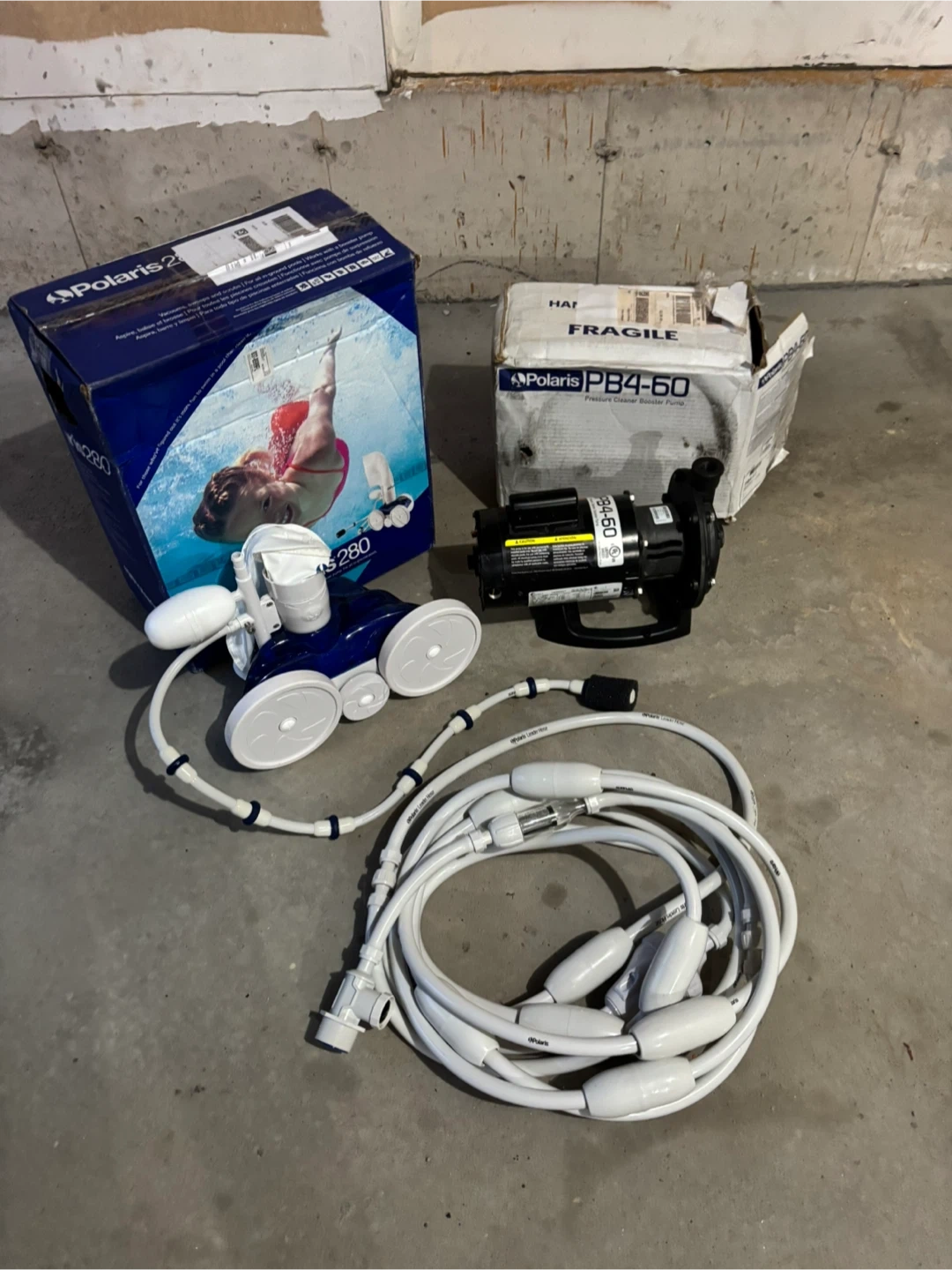 Looking to sell my Polaris Vac-Sweep 280 pool cleaner and booster pump! It's brand new and ready to keep your pool sparkling clean. Comes with all the necessary components and the original box! Perfect for any pool owner looking for a reliable and efficient cleaner. Brand new. Removed from box for picture. Retails new for $1650