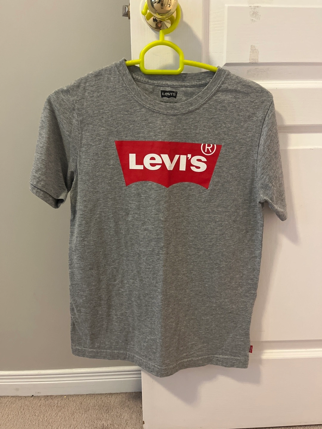 A Levi's grey t-shirt with the classic Levi's logo on the front. It's in great condition and ready for a new home!