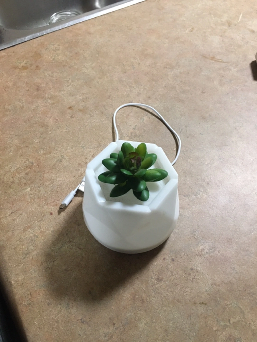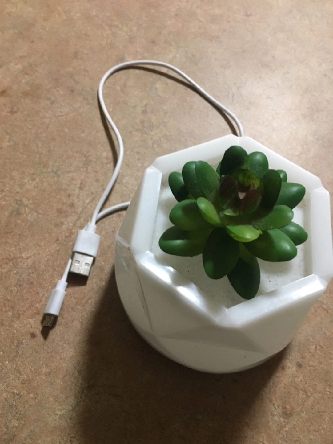 This is a cute little artificial succulent aroma lamp! It's powered by USB, so it's easy to plug in anywhere. It would be perfect for a desk or nightstand