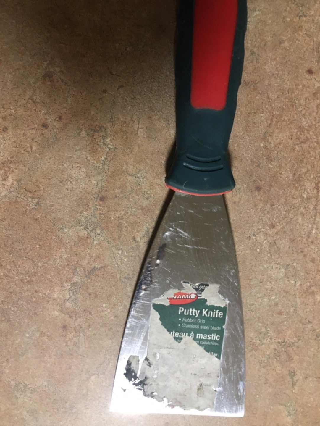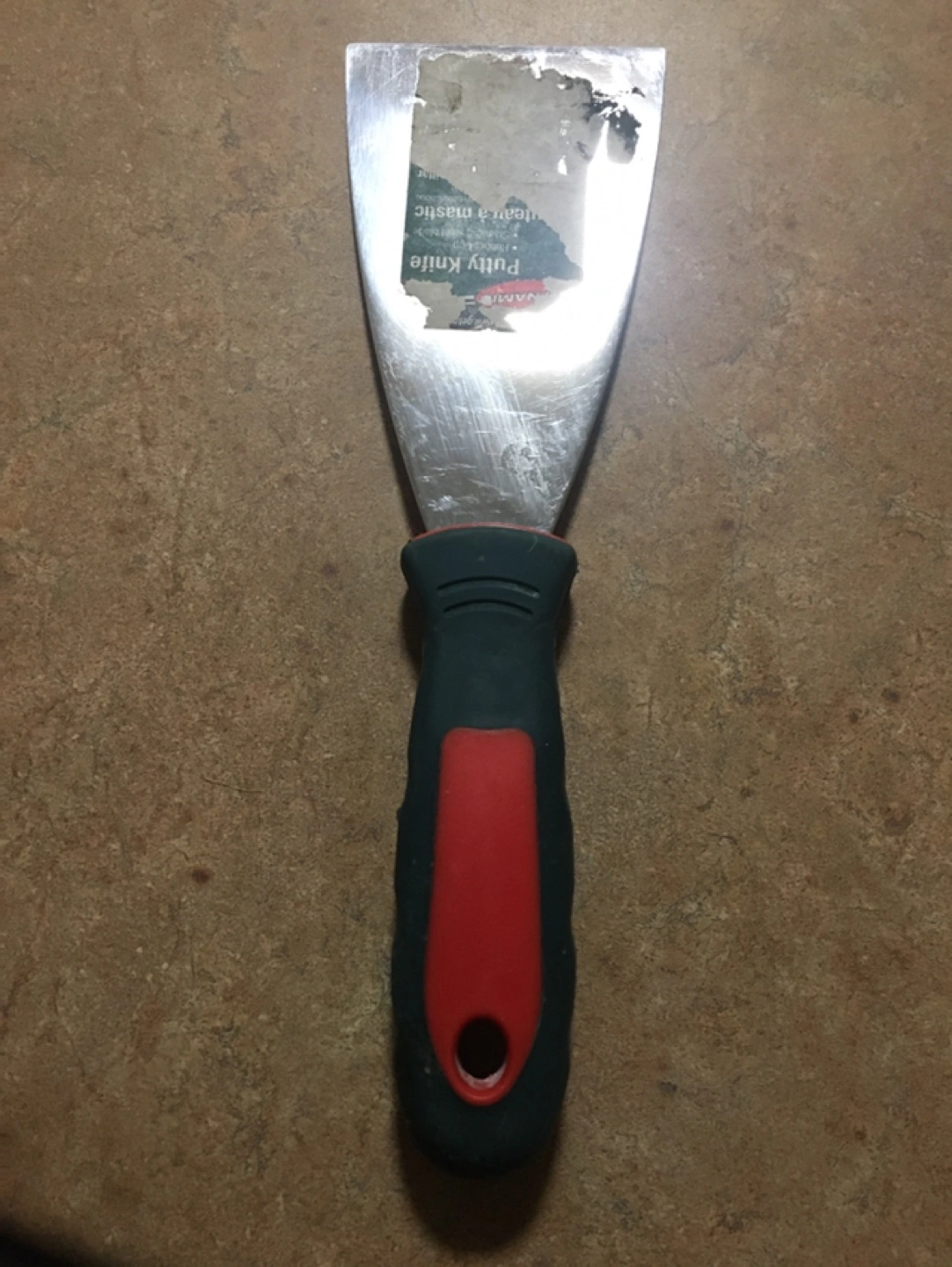 Selling a Nami putty knife with a rubberized grip and stainless steel blade. It's in used condition, but still works great for applying putty or other fillers
