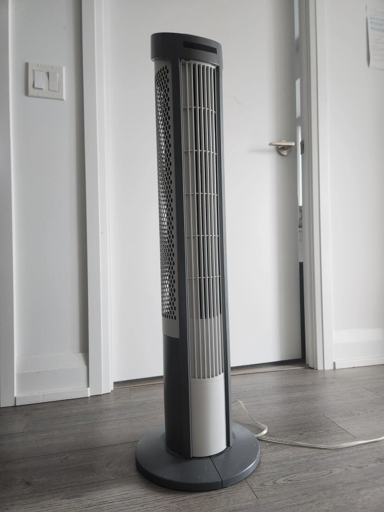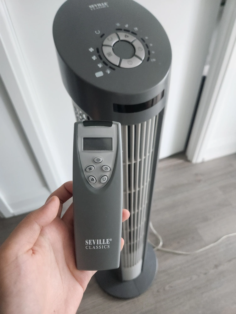 Selling a Seville Classics tower fan in great condition! It comes with a remote control for easy adjustments. This fan is perfect for keeping cool during the summer months. It's easy to use and has multiple settings to customize the airflow to your liking! -The plug is slightly crooked but fits into the outlet -The remote is replaced with new battery and works well👍