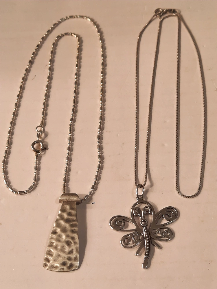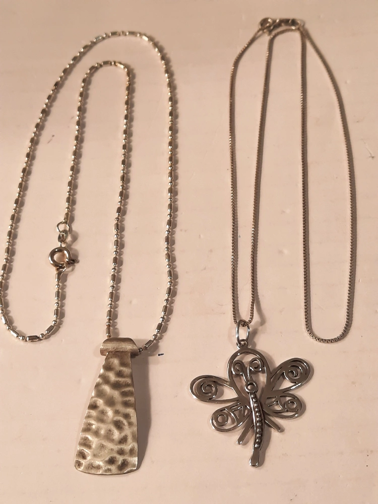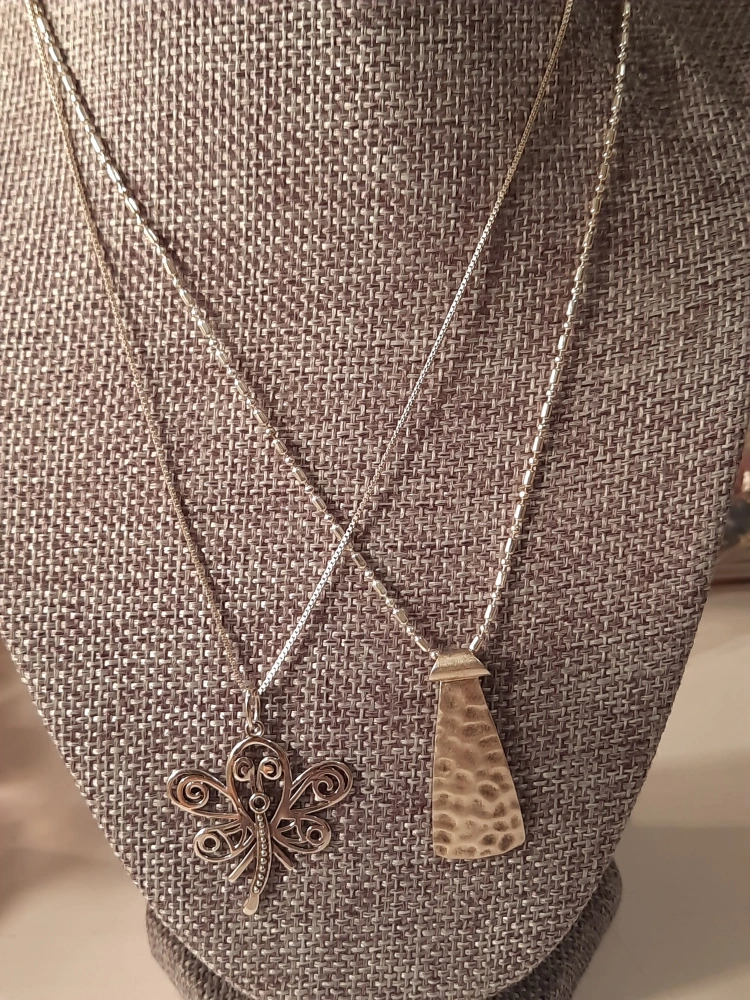 Two lovely sterling silver pendants for sale! one is Silpada.One features a modern, hammered design, silpada and the other is a delicate dragonfly. Both are stamped with '925' indicating sterling silver quality. They're in great shape and ready to add a touch of elegance to your style