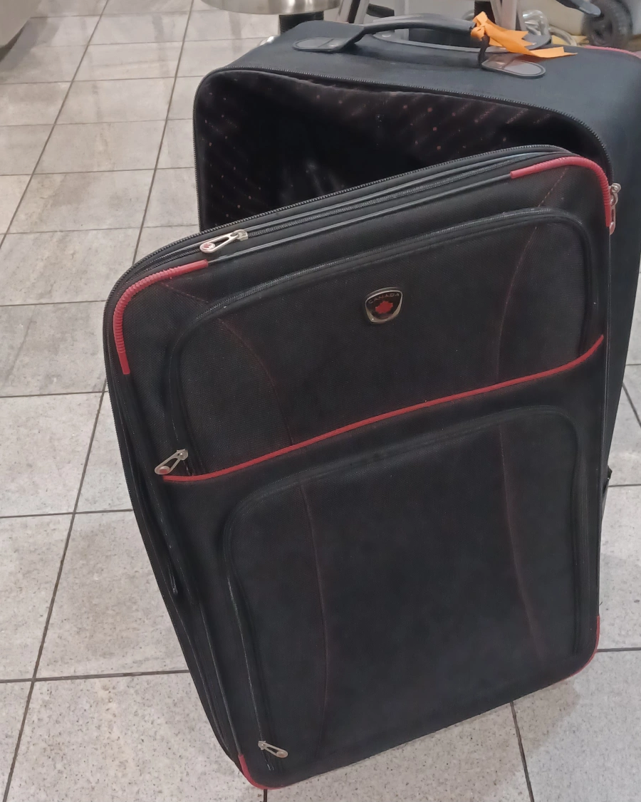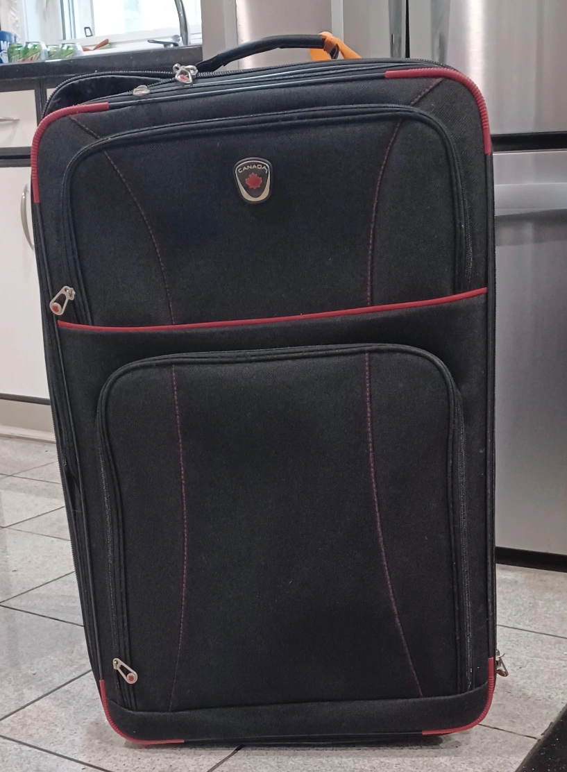 Selling a black suitcase from Canada Luggage Co. It's in great shape and ready for your next trip! Features a retractable handle and wheels for easy transport. Nothing wrong! Dimension 28"×18.5"