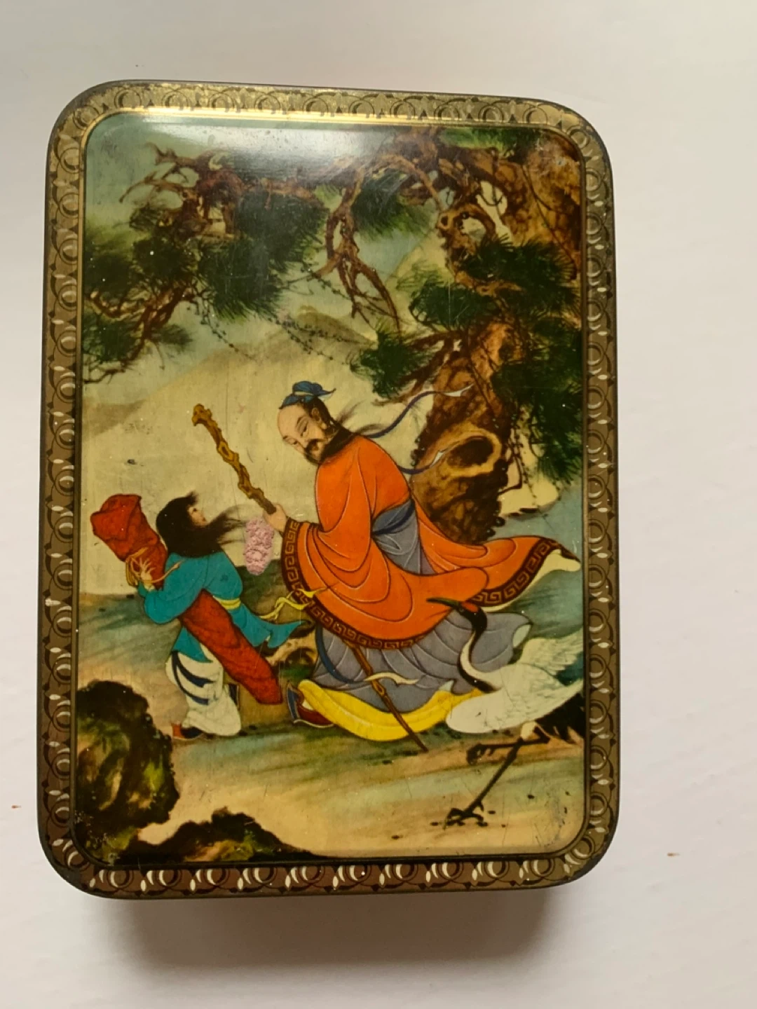 A charming collection of vintage buttons in a decorative tin! There's a variety of sizes, colours, and styles, perfect for sewing, crafting, or collecting. The tin itself is a lovely piece with an Asian-inspired design