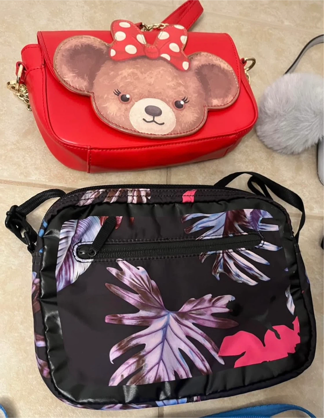 $10 each or Best Offer if buying 2 or more (check out my other listings to bundle items) There's a cute red bear purse, a light grey purse with a fluffy pompom, a floral print purse, and two blue Puma purses. They're all in great condition (most are practically brand new)