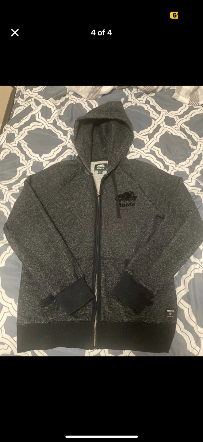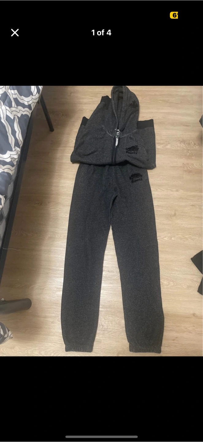 65Selling a comfy Roots sweatsuit in a salt & pepper colour! Includes both the hoodie and the pants. Perfect for lounging around the house or running errands.