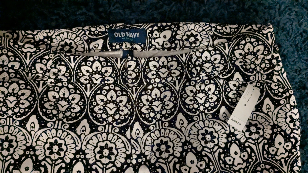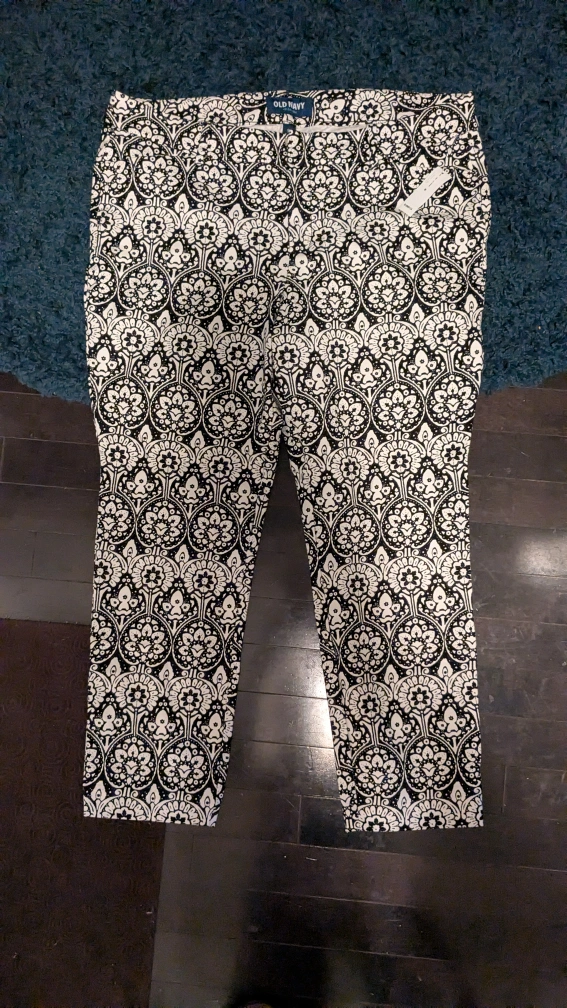 Selling a pair of Old Navy pants in size 16. They feature a stylish black and white pattern. Great for adding a bit of flair to your wardrobe!