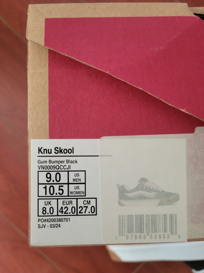New Vans Knu Skool Gum Bumper Black US 9