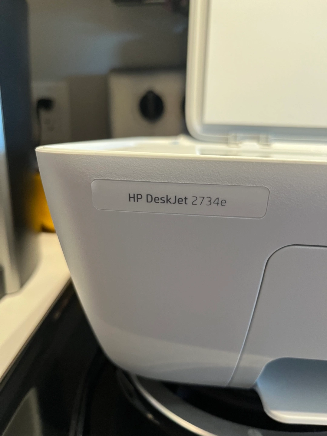 Selling an HP DeskJet 2734e printer. It's in great condition and ready for a new home! It prints on A4 and 8.5x11" paper.