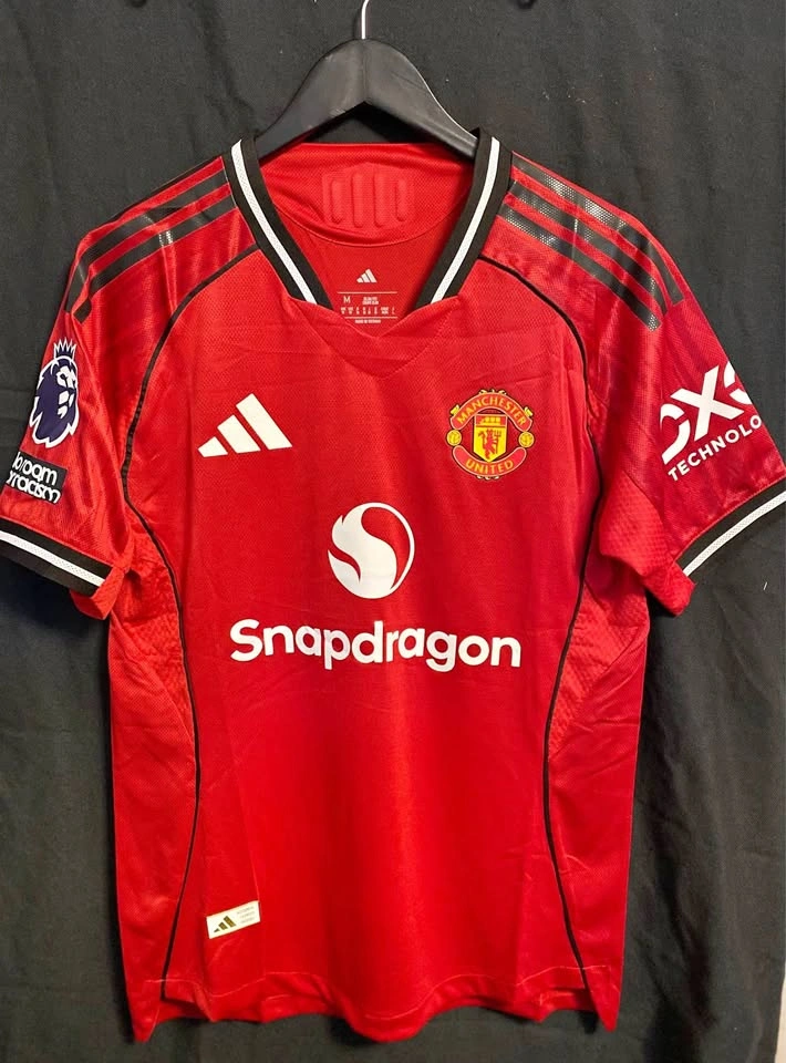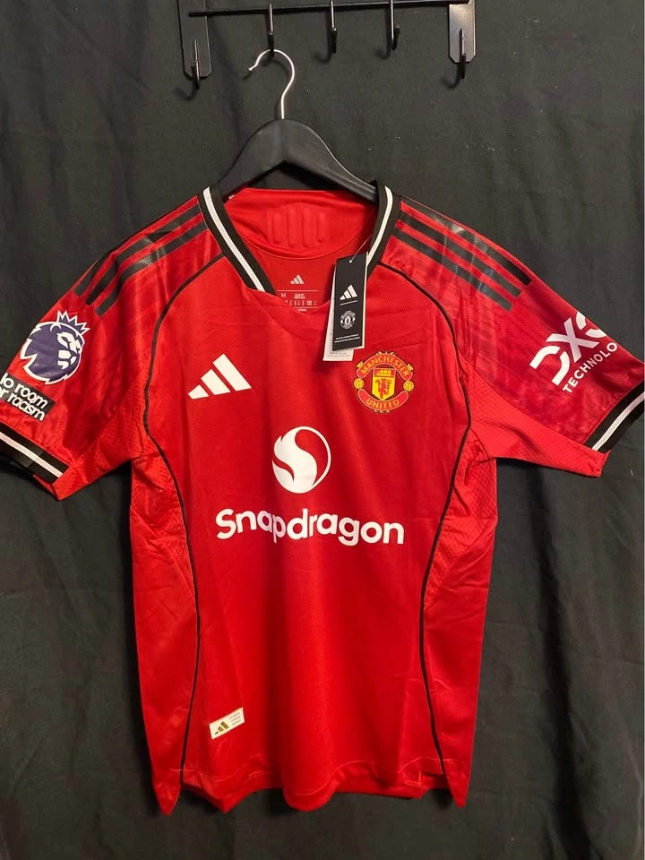 Player version jersey. Size : M This Manchester United adidas jersey pays tribute to the stadium in which it will be starring in 25/26 with a "Theatre of Dreams" sign-off and abstract Old Trafford-inspired graphics on the sleeves. Built for comfortable football fandom, it also features moisture-managing AEROREADY and a woven club badge.