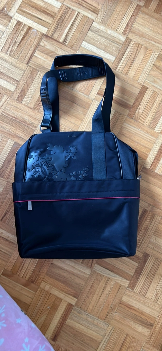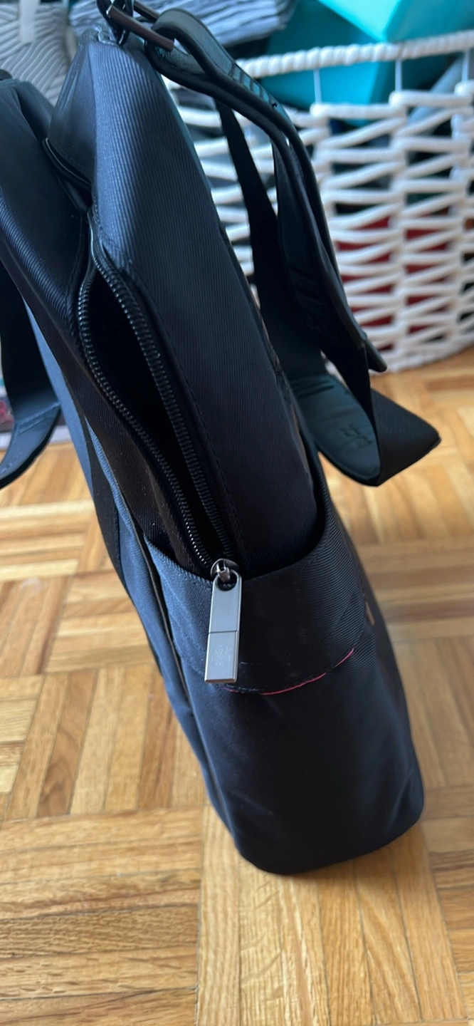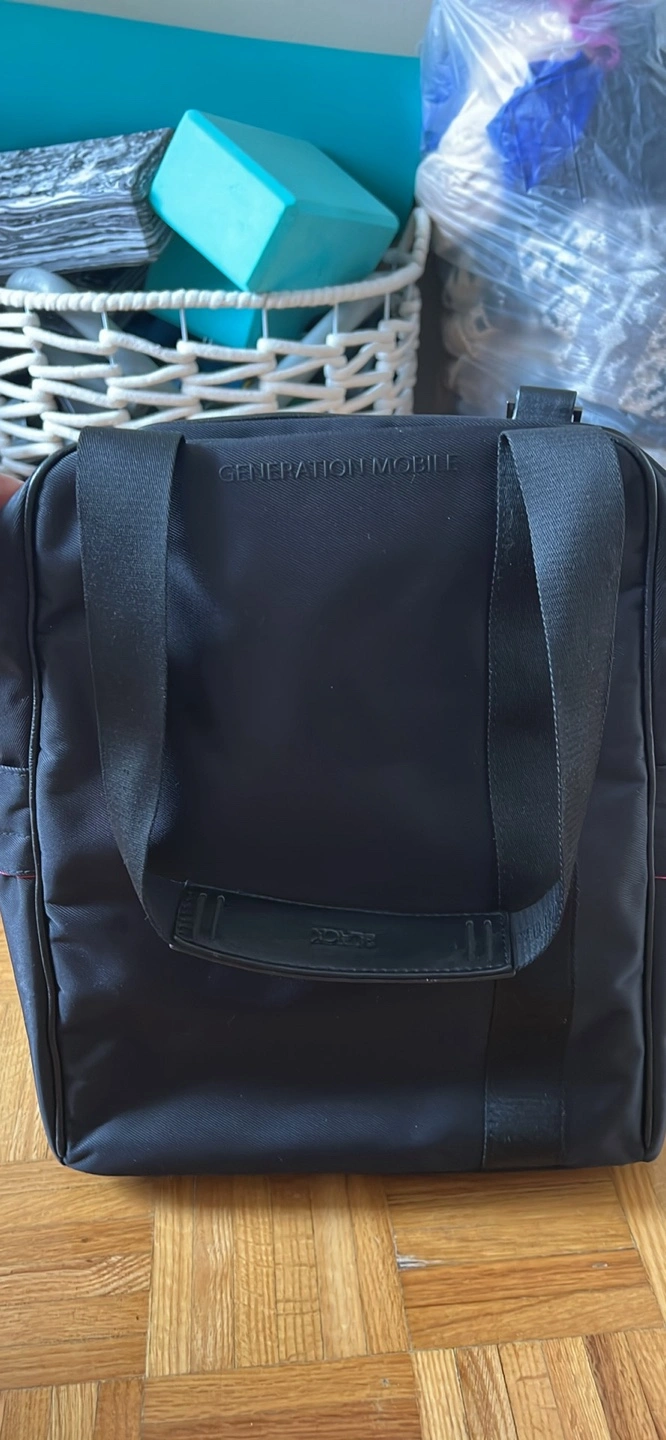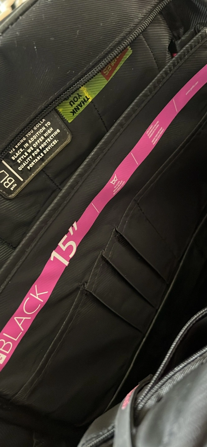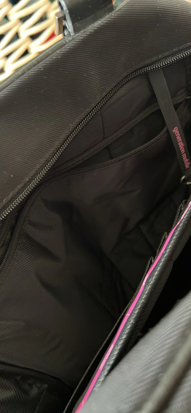 Selling a Generation Mobile laptop bag, perfect for carrying your 15-inch laptop and other essentials. It's black with a pink accent and features multiple compartments to keep everything organized. Great for students or professionals on the go!