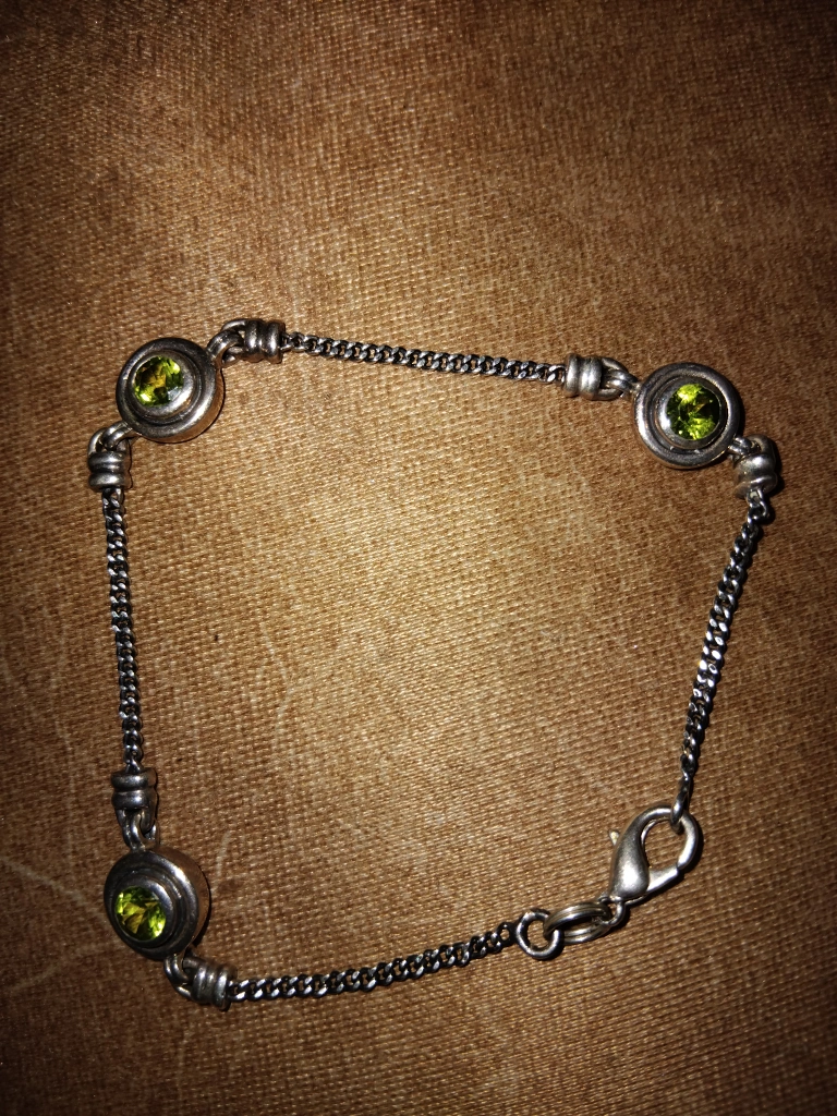 Here's a bracelet featuring silver-tone metal and lovely green stones. It's in great condition and ready to add a touch of sparkle to your wrist